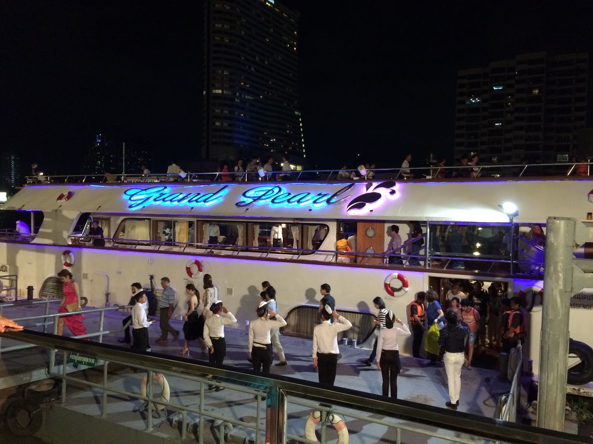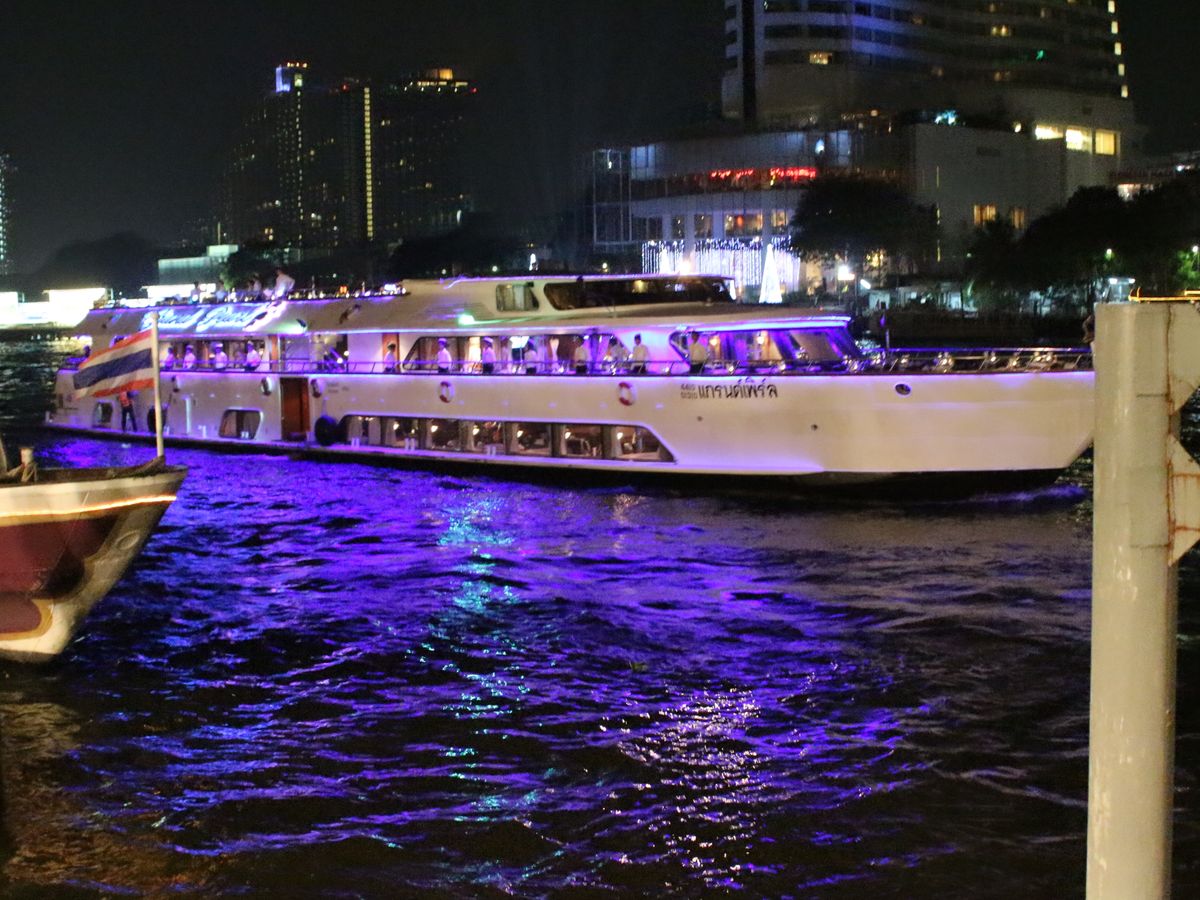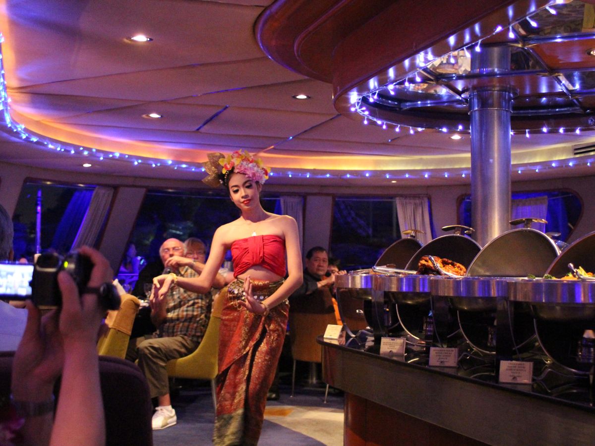 母娘で行きました。ビュッフェ、しかも船上だとゆっくりできないし、母と落ち着いた雰囲気の中でお食事が出来ると思いこちらに決めました。唯一心配だったのはタイ料理で、口に合わなかったらどうしよう、と最後まで悩みましたが、みなさんの投稿や写真でチェックしたり、事前にホテルに電話してメニューを聞いていたので、ラム肉など苦手な料理に当たることは無かったですし、心配なんてしなくて良かったぐらい本当に美味しいお料理でした!またぜひ大切な人と一緒に乗ってみたいと思います。クルーズでは最高だと思います。最後の方に出発するので、他のクルーズもだいたい見れまたけど、音楽がうるさかったり、時間がアプサラより短いのか、船のスピードが明らかに速く、ビューン!とものすごいスピードで私たちの船の横を走り去りました。きっと揺れるんじゃないかな。。。ゆったりとした静かな時間を楽しみたい、タイの夜景やライトアップを心行くまで堪能したい方にはこのクルーズはお勧めです。