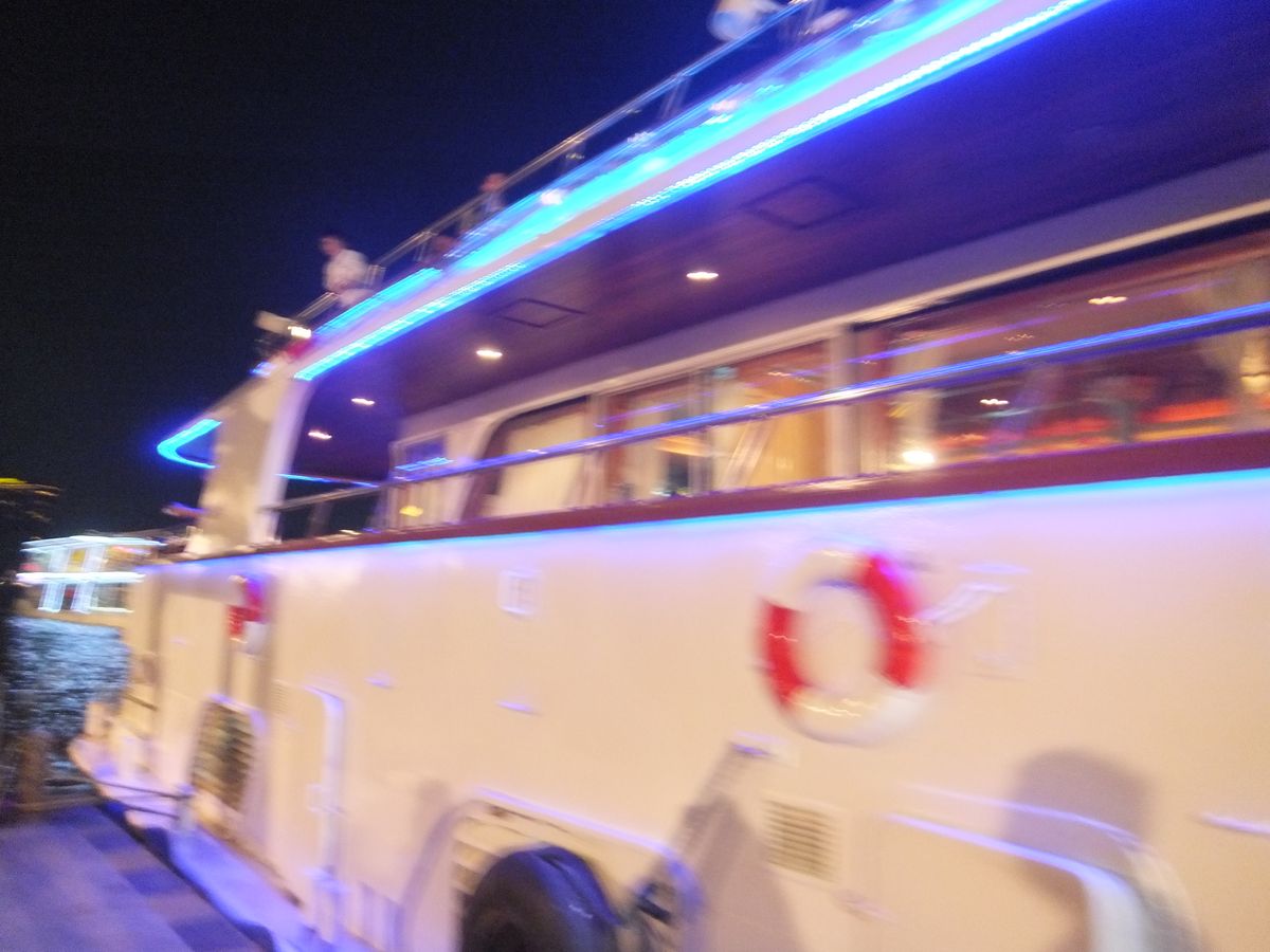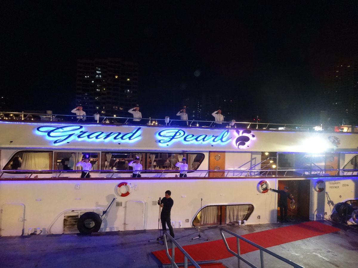 船乗り場の場所はやや分かりにくいですが,事前にgoogle mapsで確認したので,問題なく辿り着きましたが,市内の交通は混雑で,高速を使用しました。早めに出発がよいと思います。船は小型でありますが,静かで,よかったです。夜景は素晴らしかったですが,個人差もありますが,料理は若干辛いかな。