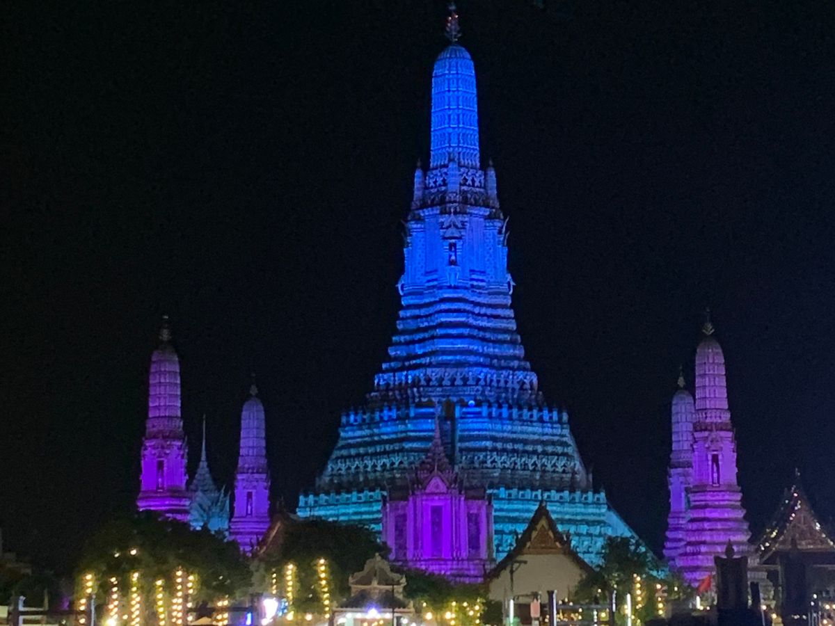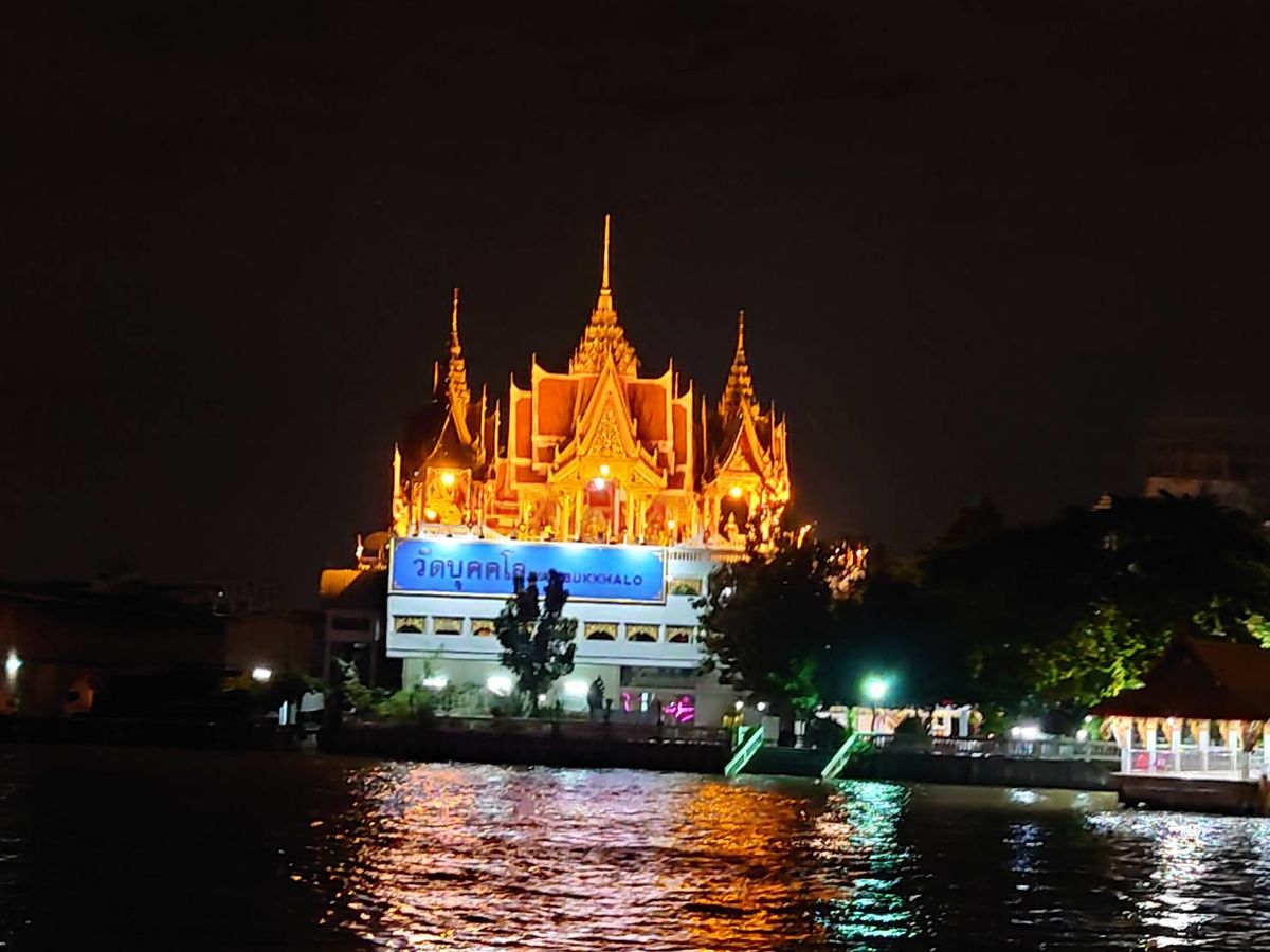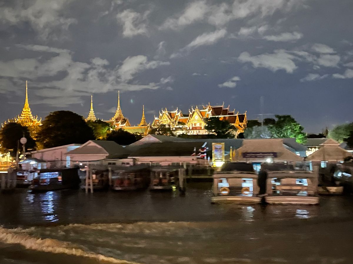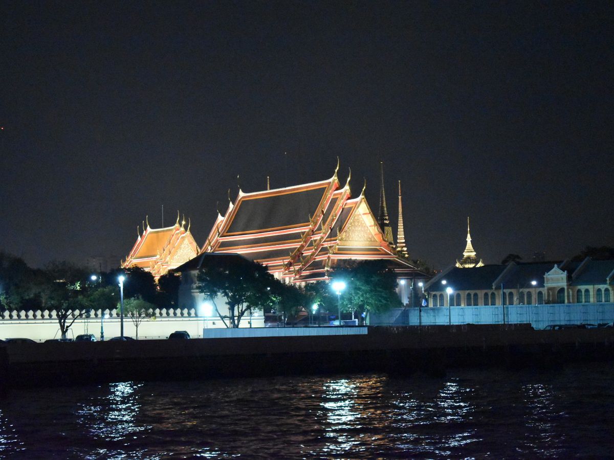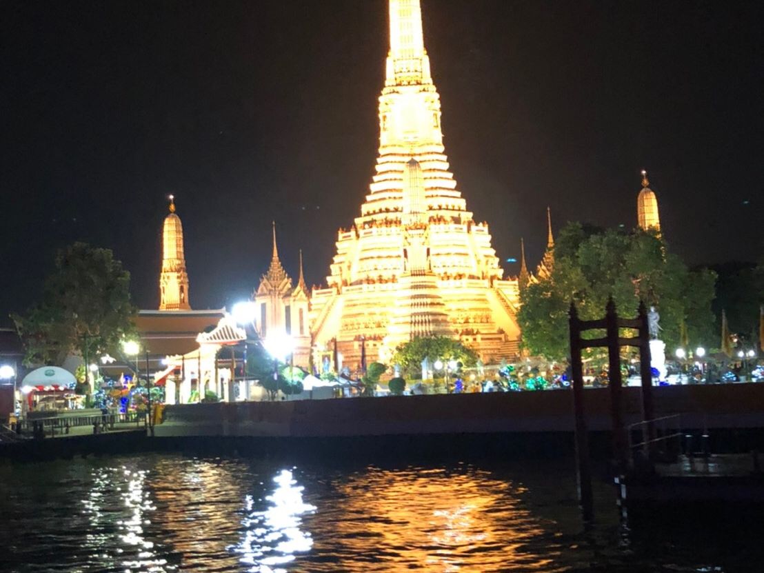 川の水位が高く端の下を通れなかったので、ワットポーやワットアルンのライトアップは見られませんでした。こればかりは運かと思います。