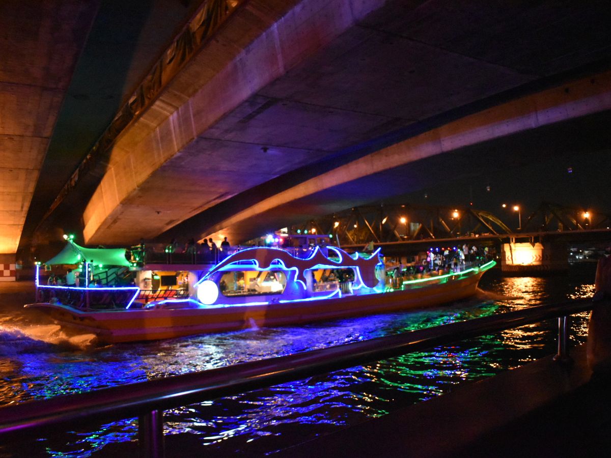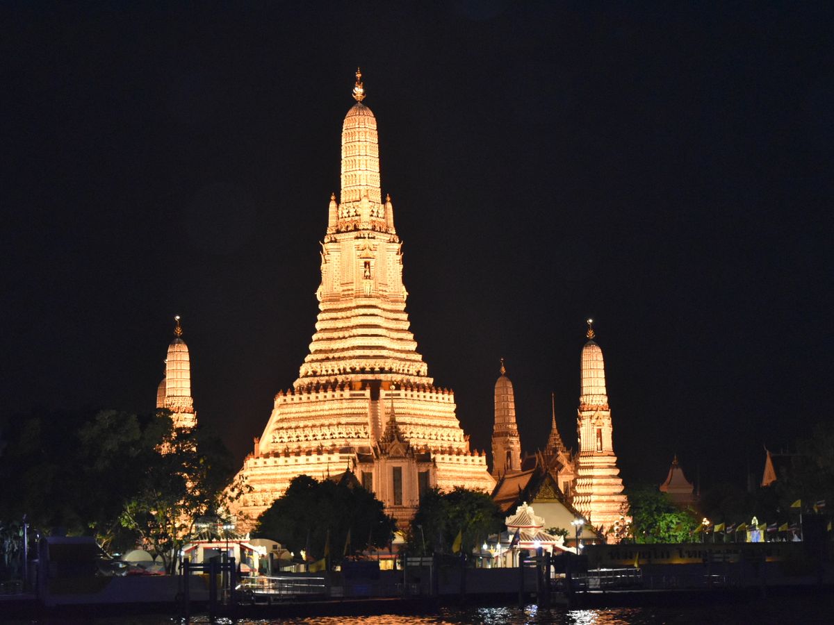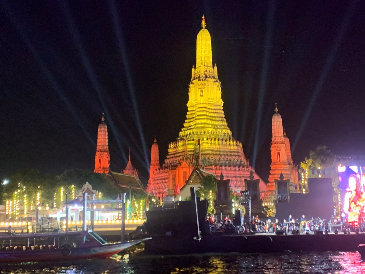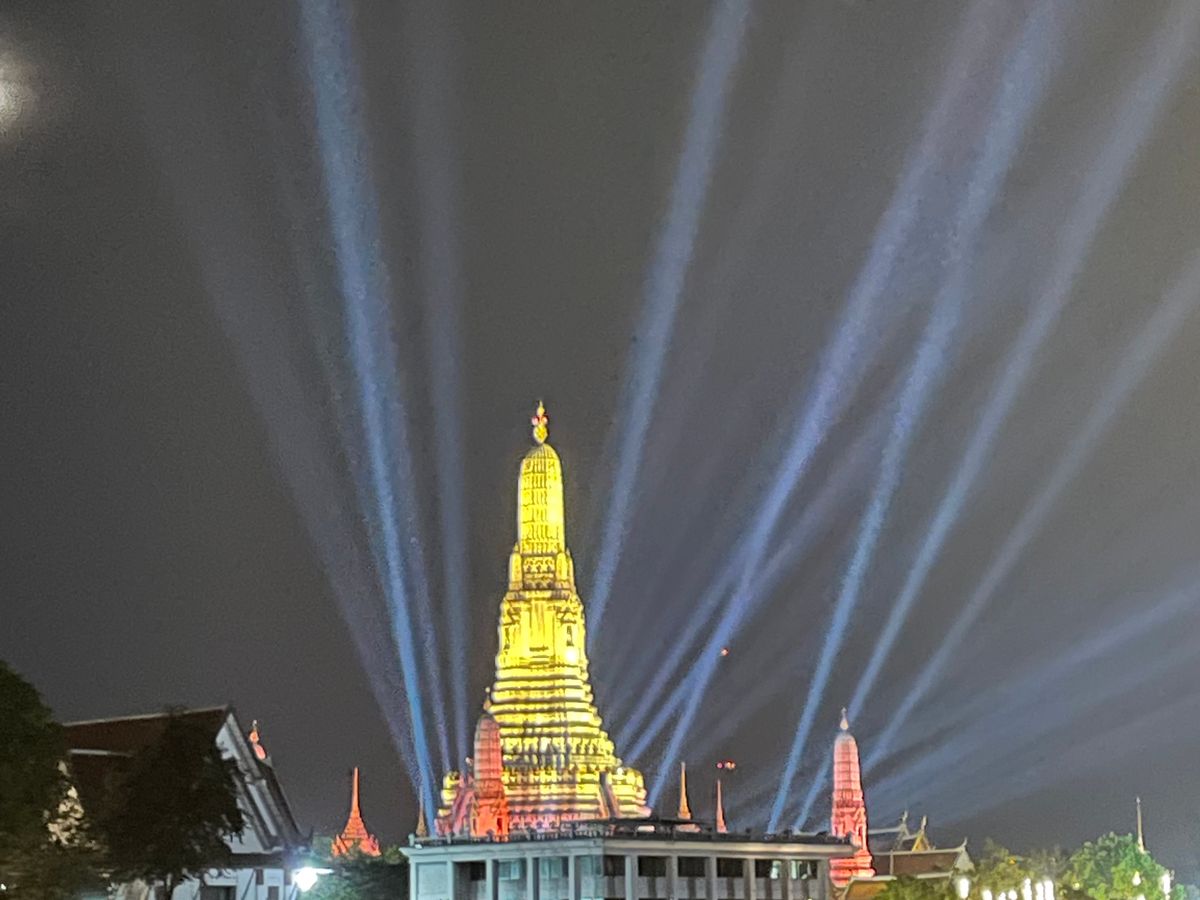 川の水位が高く端の下を通れなかったので、ワットポーやワットアルンのライトアップは見られませんでした。こればかりは運かと思います。