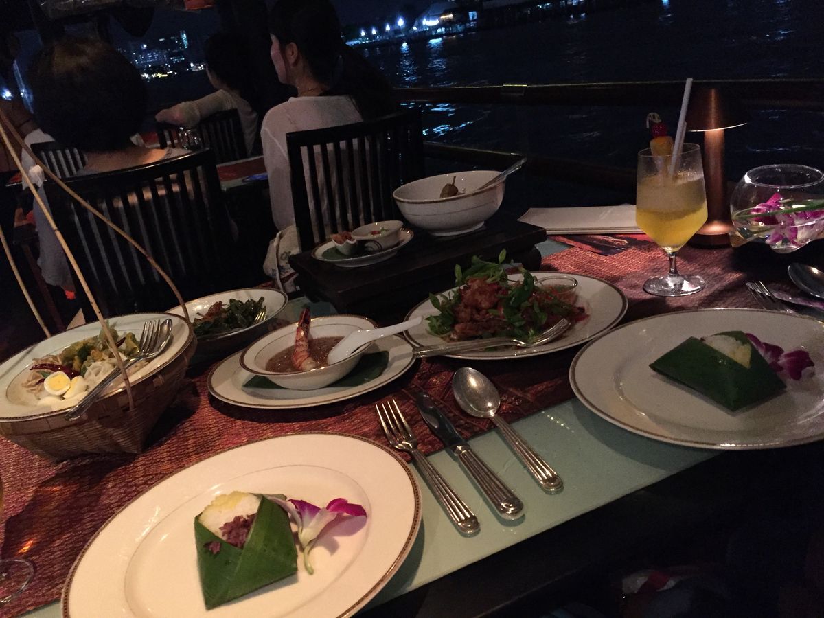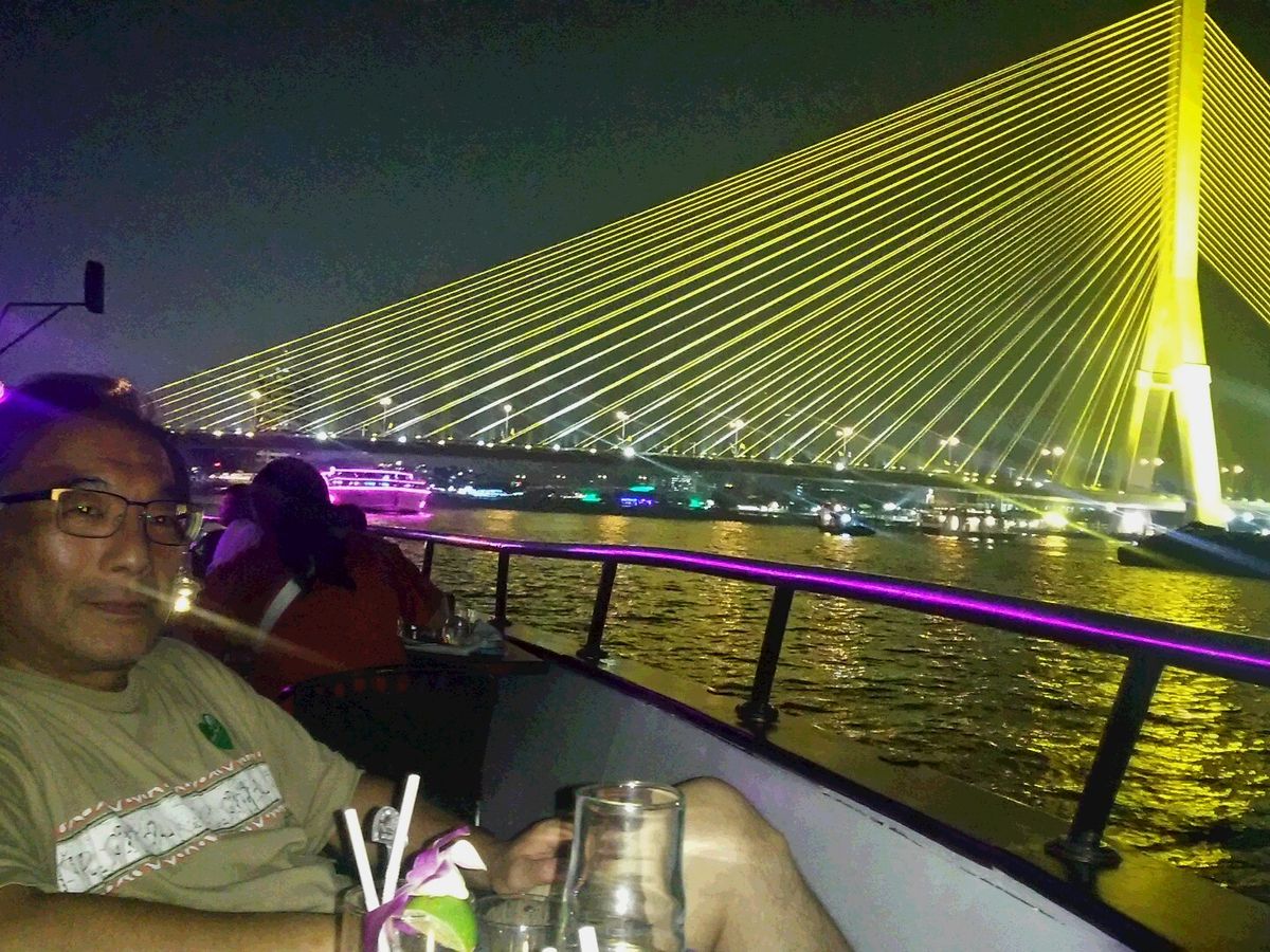 景色は素晴らしかったですよ。でもビュッフェに寿司もあると書いてあったけどタイ風の寿司で日本人には合いません。また船内でタイの歌姫が各国の歌を歌っていましたが、韓国、マレーシアなどが主体で日本人を無視していたのも悲しい。最大の難点は、ホテルから乗船まで送迎付きのコースを頼んだのだが、ガイドさんはこの商業施設の中で二時間回っていてだと。買い物に来たんじゃないのだから、スケジュールを考えてほしいよ。