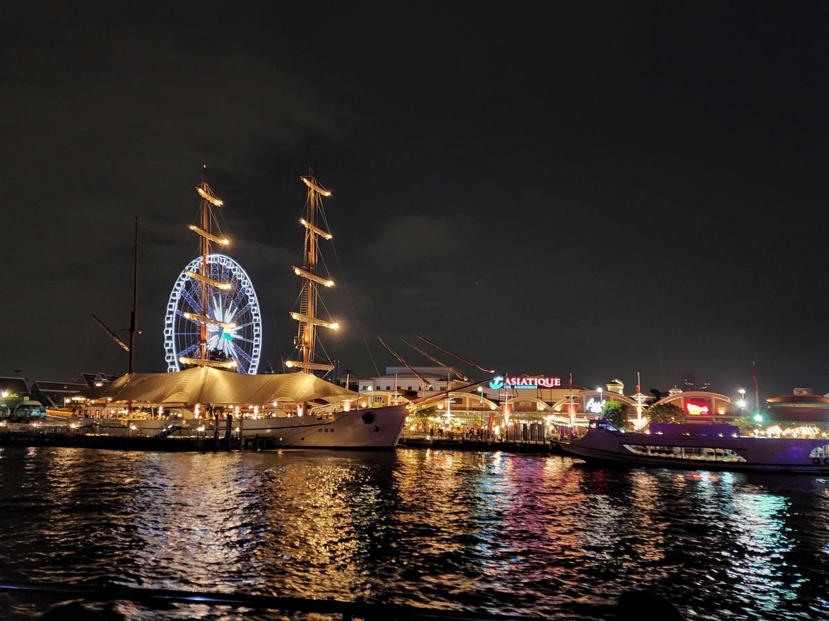 船からはライトアップされた王宮だけでなくアジアティークも見えました。
