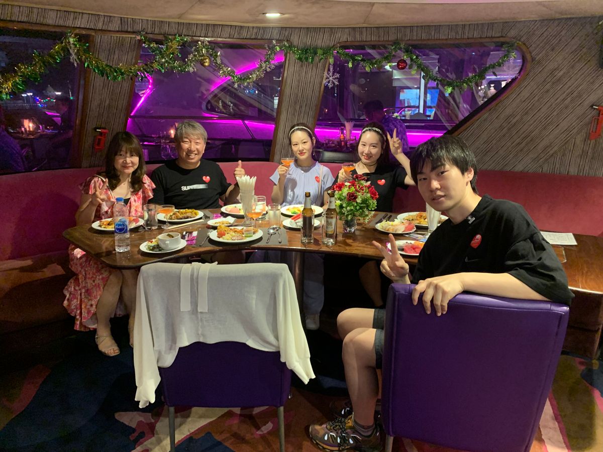 集合場所まで案内通りに船で行こうとしたら、駅に17時30分に着いたのですが、もう船便は閉まっていました。予定よりずっと早く行動すべきです。クルーズは大変すばらしく、料理は最初に食べてから、出発します。私たちは外の前の席でとても落ち着いて過ごすことができました。上の階は大音量で歌を歌っていたので、それはそれで楽しいかと思いますが、私たちは静かな場所でよかったです。帰りの送迎はつけておくべきです。私は最後にチップを渡すのを忘れてしまいました。すみません、あんなに良くしてもらってきづくのが遅かったです。
