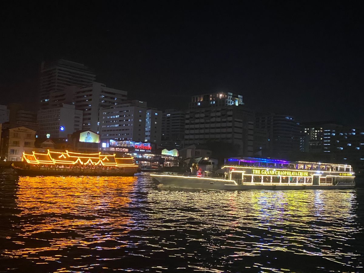 ディナークルーズは海外では2度目でしたが、とても贅沢で素敵でした!ワット・アルンや寺院、ビルや橋も全部ライトアップしていてとてもロマンチックでした✨家族でいきましたが、バンドやタイの古典舞踊などの演奏もあり、子供達も楽しかったようです☺️