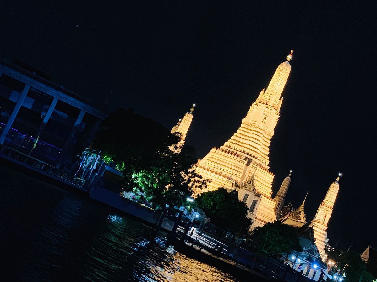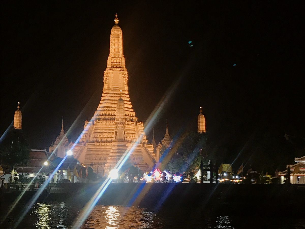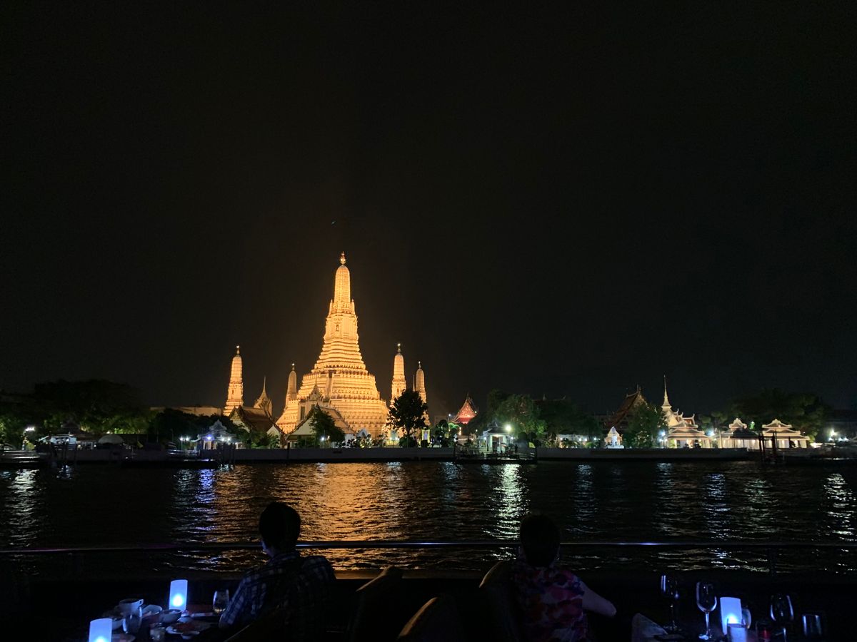 船から見えるワットアルンはとっても綺麗でした!コース料理は本場のタイ料理で美味しかったです!サプライズにケーキを頼んでいましたが、みんなで歌ってくれて嬉しかったです。