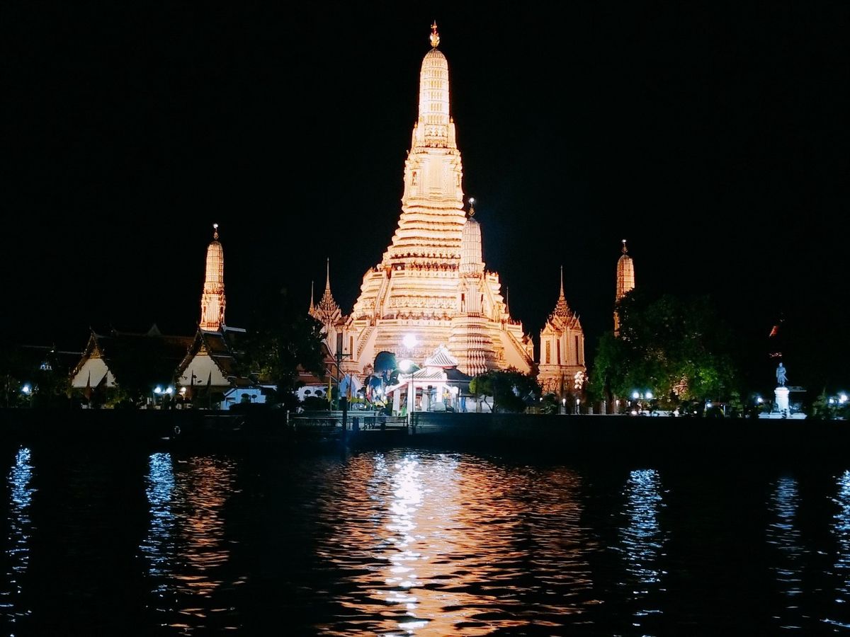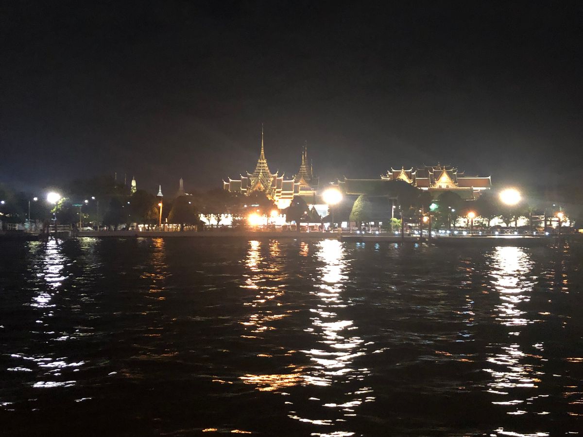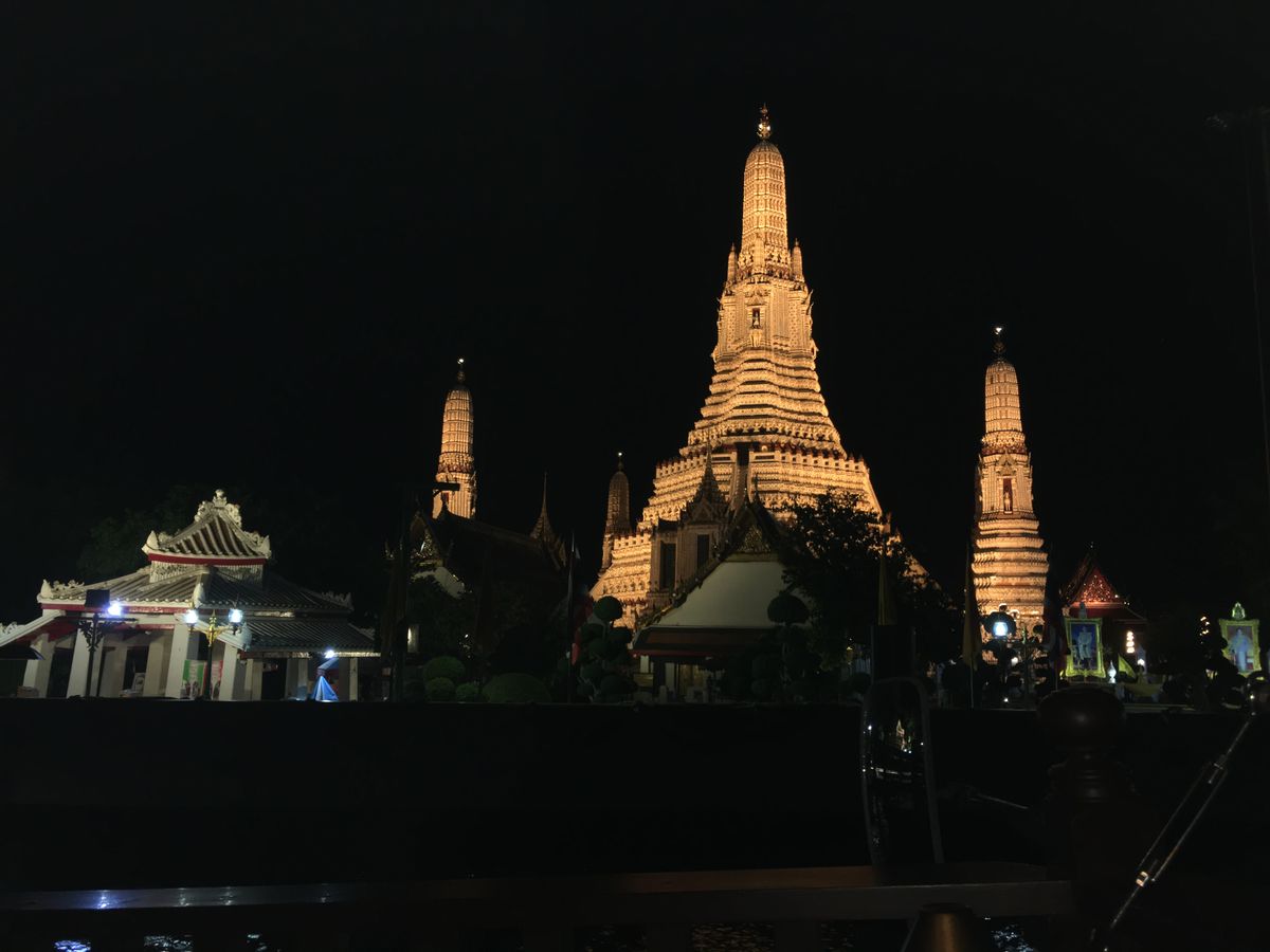 船から見えるワットアルンはとっても綺麗でした!コース料理は本場のタイ料理で美味しかったです!サプライズにケーキを頼んでいましたが、みんなで歌ってくれて嬉しかったです。