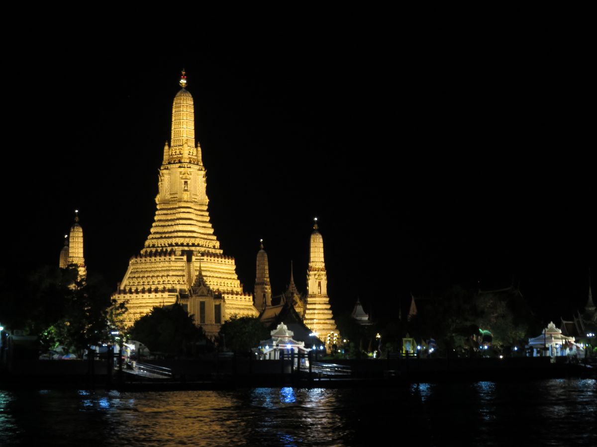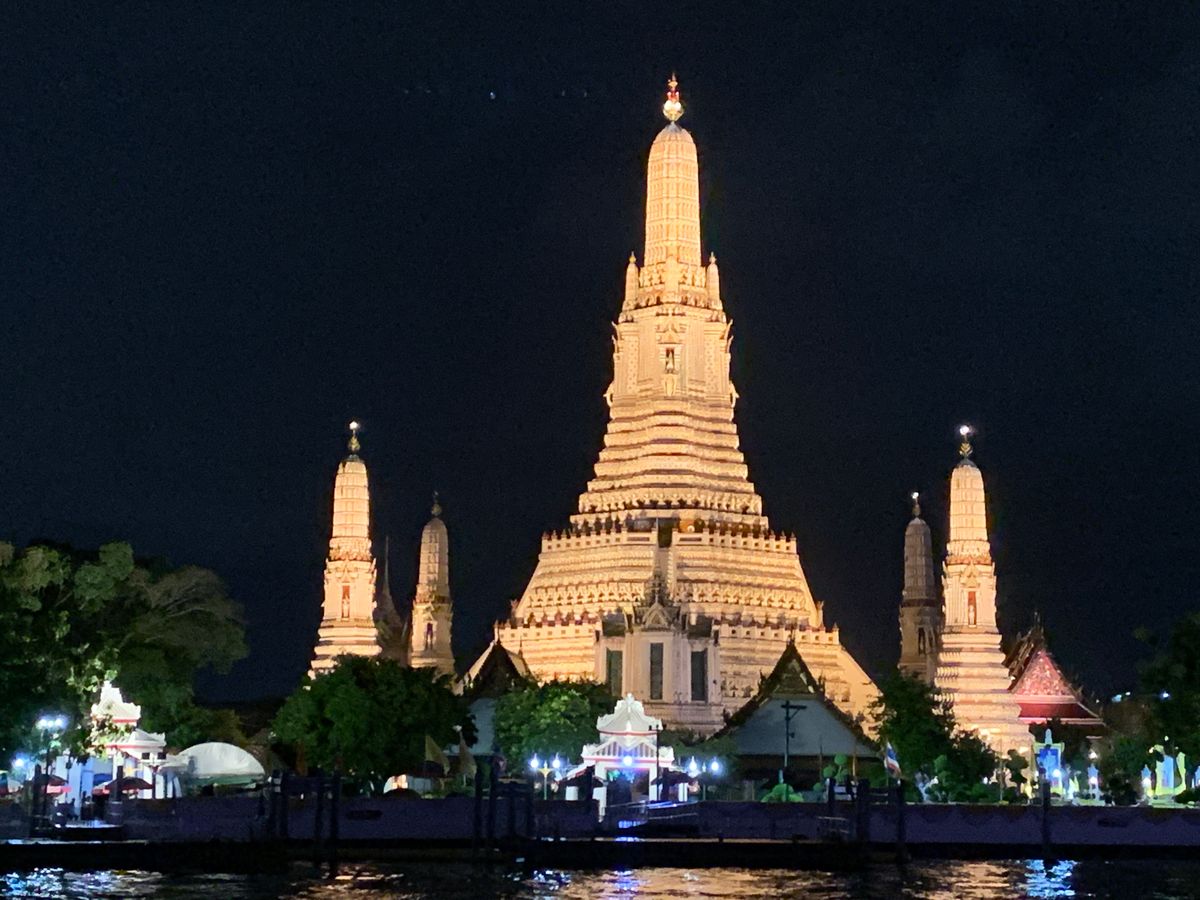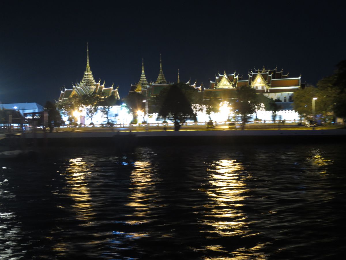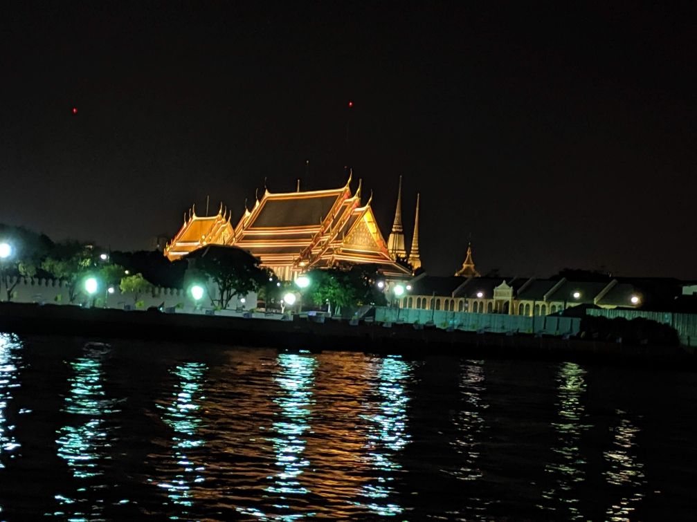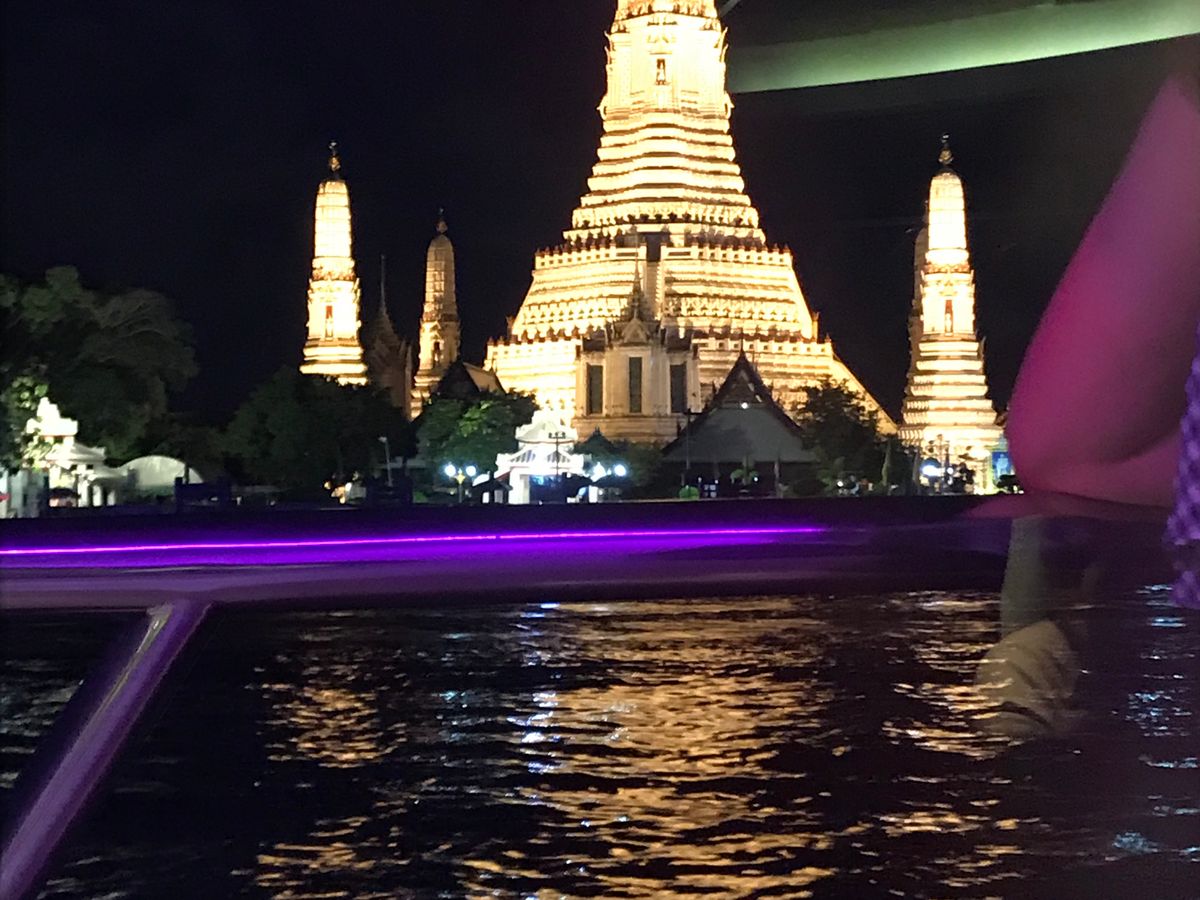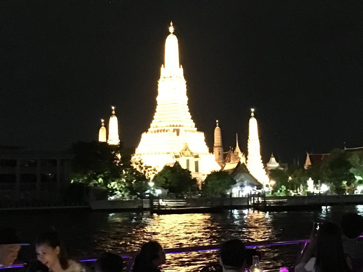 チャオプラヤ川からライトアップされたワットアルンやワットプラケオ、街並みなど、ゆったりとした時間をすごすことができました。
