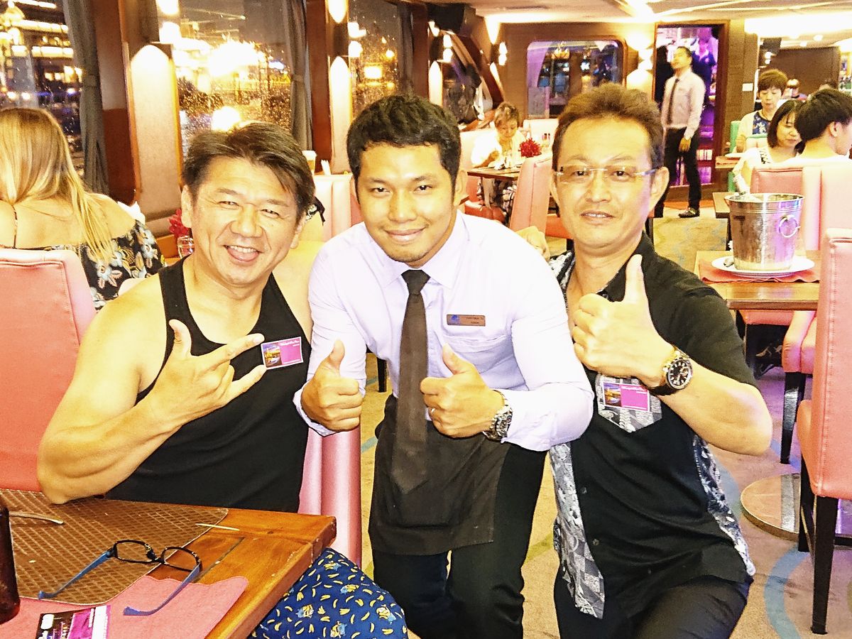 タイのゴルフコンペに参加して3回目市内観光など経験したので初めてディナークルーズに参加しました。仲間3人も大変喜んでくれ私もホッとしてます。バンド演奏も私達年代の懐かしい音楽で、とても楽しいゆうべを過ごすことができました。ありがとうございます。