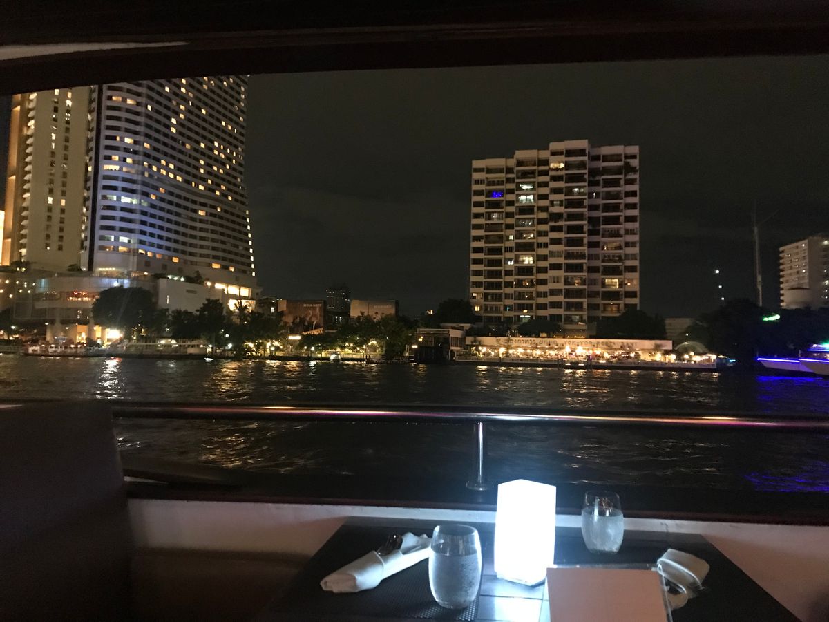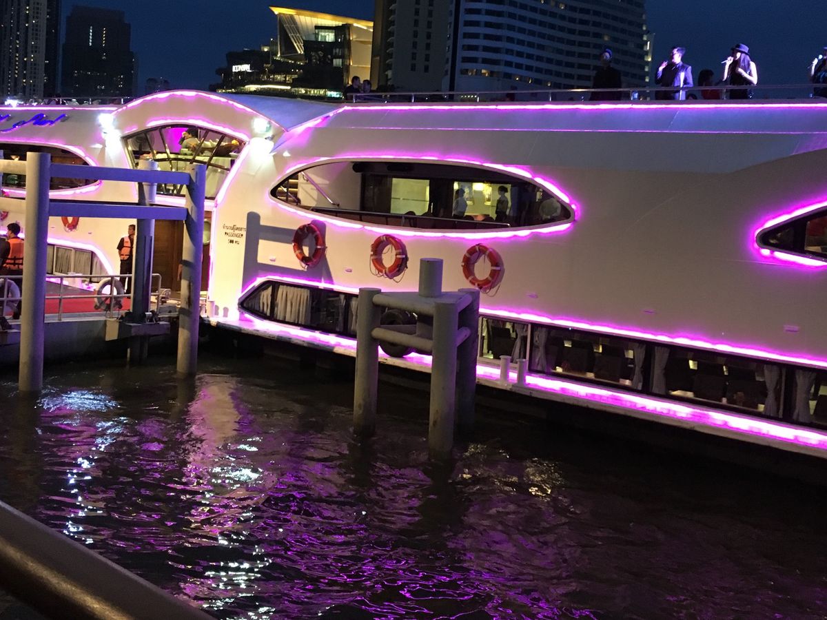 バンコクの夜の景色をクルーズ船で見る体験はまさに非日常の世界!ディナーを楽しみながら素敵な時間が過ごせました。一点だけ、、、船が二種類ありますがこの船にて異なる雰囲気でした。大きさも違うし、やはり大きな船の方が、より非日常的でゴージャスな気分になれたと思います。私の乗った方は少し小さい方でした。