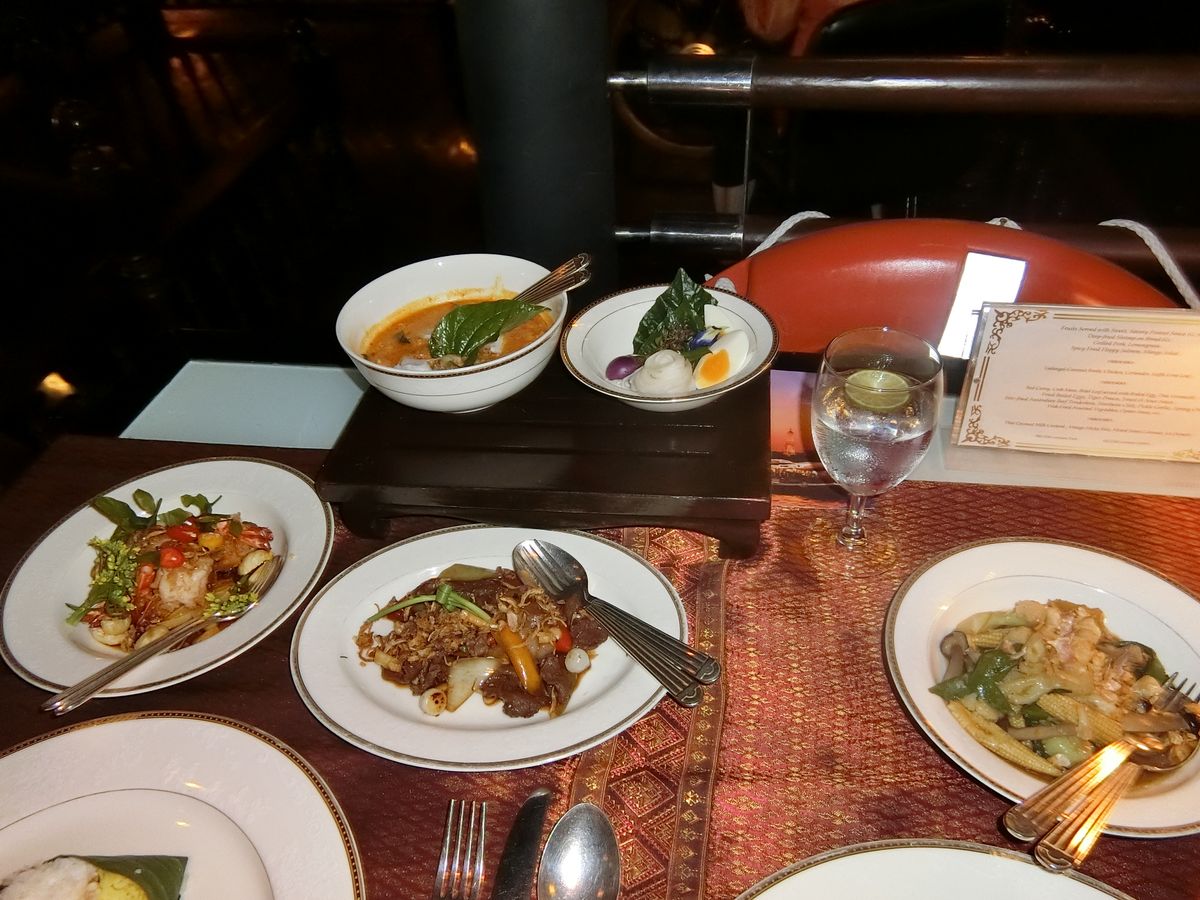 ゆったりとした時間を過ごせそう、ビュッフェではなくタイ料理のコース、5つ星ホテル運営で安心感がある!ということでこちらのクルーズに決定。