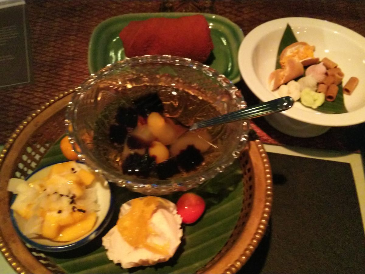 デザートも、タイの伝統的なものを三種類くらい食べることができ、サービスでタイのクッキーもいただきました。