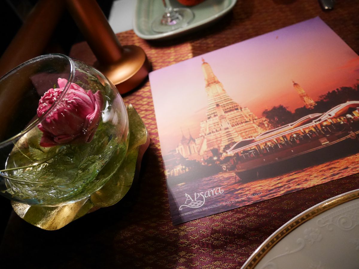 復路ワットアルンでは暫く停船し、テーブル毎に記念写真を撮って帰りに台紙に入れて渡してくださるサービスもついています