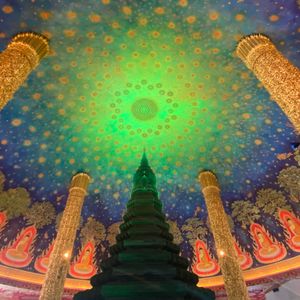 15年前にバンコク旅行に行った時には話題になってなかった2箇所だったので、楽しみにしていたのですが、ピンクガネーシャは、残念スポット。無駄に日本のアニメキャラクターがいて、興醒め。朝早い時間だったからか、お店も盛り上がりがなく。自分の産まれた日の曜日の色のネズミさんにお願い事をすると事前調べしてましたが、ガイドさんは中央のネズミさんにお願い事する事で問題ないと。。。??そーなの??と少し半信半疑になりました。ピンクガネーシャに比べ、ワットパクナムは、写真でみた通り、本当に美しかったです✨博物館も興味深く、行って良かったです!!