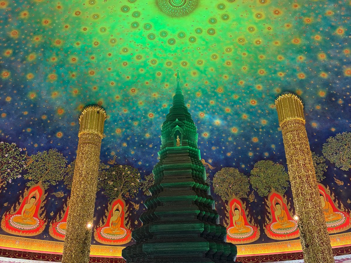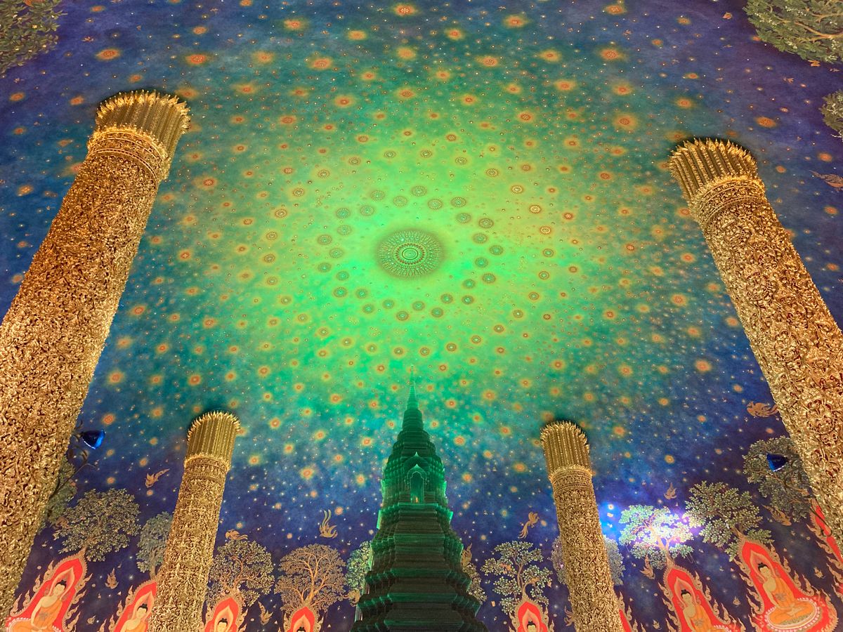 王室寺院のワットパークナムの仏陀の生涯を描いた天井画は息をのみこむ美しさ。