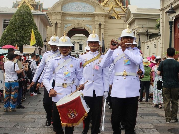 王宮周辺の観光では、晴天で気温が高い中、ガイドの方が木陰を探して説明してくれるなどに配慮が嬉しかったです。また、暑さ野中の観光で疲れの表情が参加者の中に現れていた時には、元気づけるような言葉や気遣う言葉をかけてくださり、なんとか猛暑の中の観光をやり遂げられました。でも、多くの参加者は日傘を持ち合わせてなかったので、可能なら、日傘の貸し出しサービスなどをしてくださると、もっと快適な観光ができたのではないかと思いました。ゆっくり観光する時間や露店を見たりする時間、冷たい飲み物を飲んで休憩する時間などはありませんでしたが、短時間で主要な王宮周辺の観光をすることができたので、総合的に満足する観光ツアーとなりました。