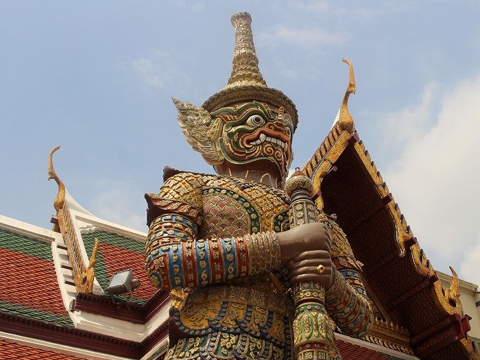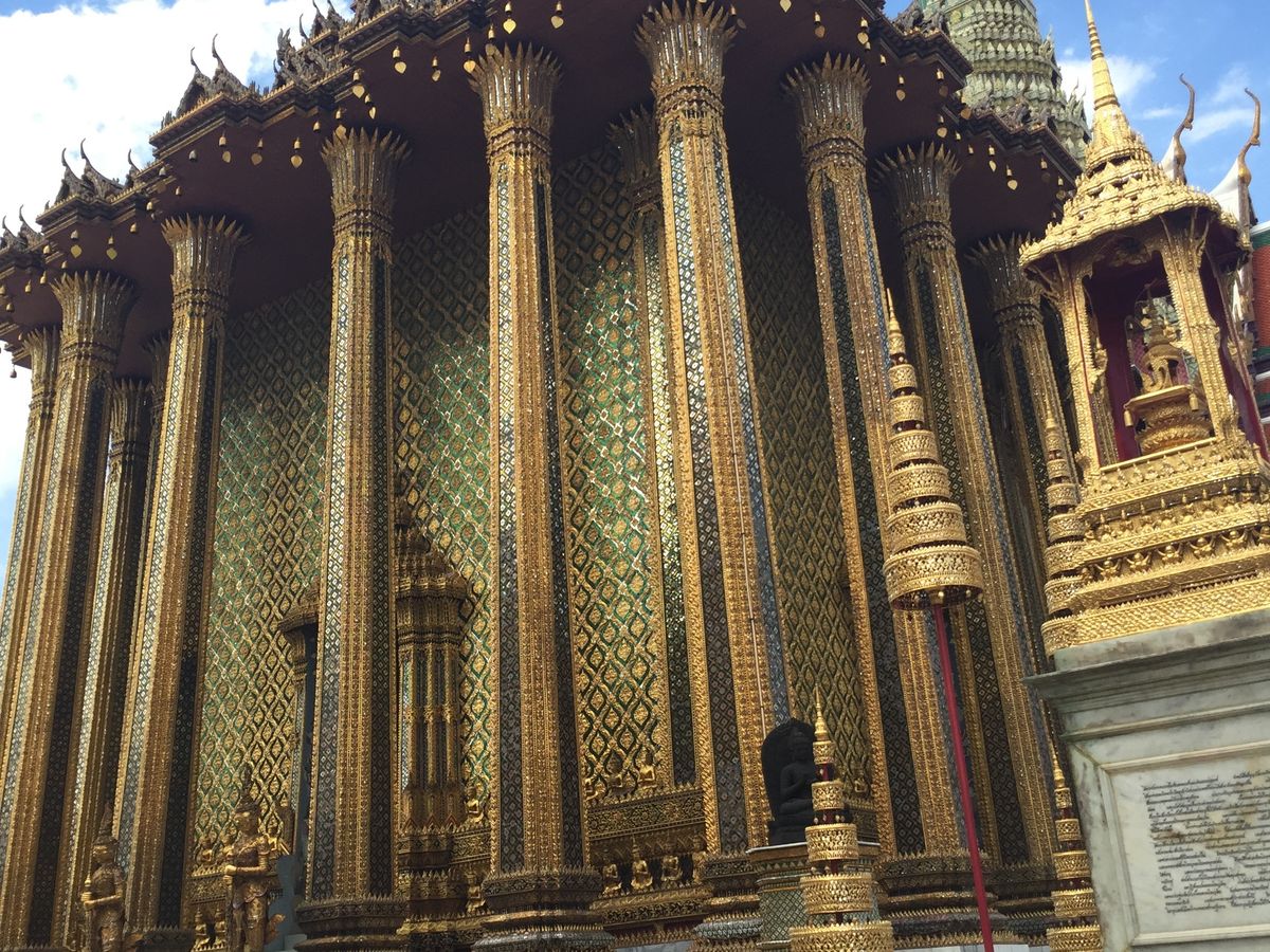 エメラルド寺院の中の建物の装飾に金や、鮮やかな色が多用されていて、とても煌びやかで綺麗でした。日本の建築様式では見られないものだったので、興味深かったです。