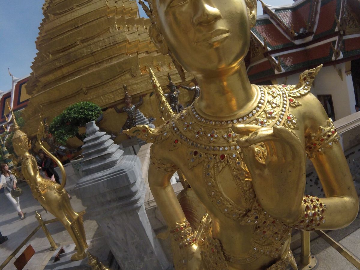 王宮とワットプラケオ(エメラルド寺院)は、耳にしていた通りに混雑しています。それでも、金・赤・緑・ダイヤ様の輝きを施した建物や塔は、まさにタイ国を象徴していて、とても美しく煌びやかです。