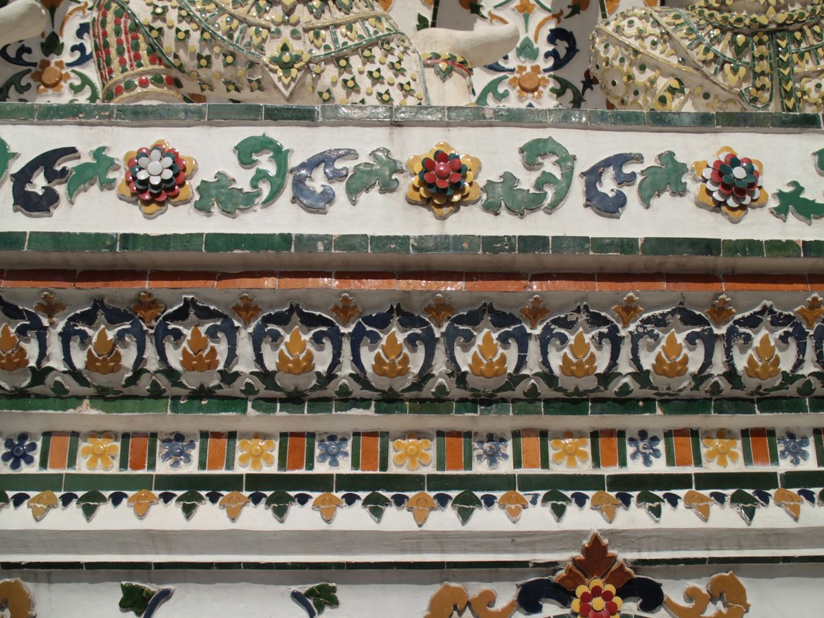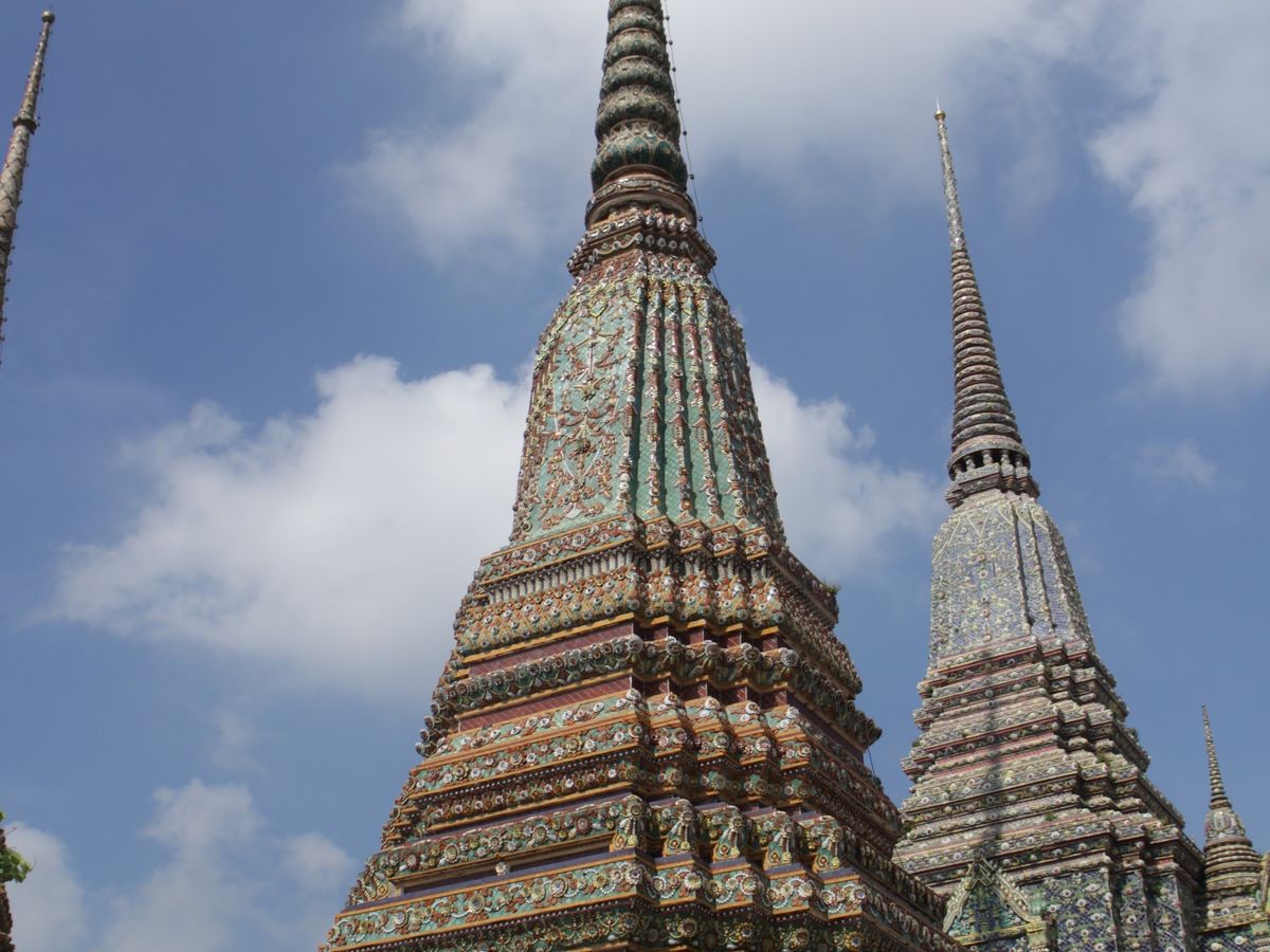 ワット・アルンは改修中ということでしたが、白地にカラフルな色づけがされていて、可愛らしい印象でした。ワット・ポーでは、寝釈迦像の大きさにとても驚きました。壁画も繊細だったので観察してみるとおもしろかったです。エメラルド寺院と王宮は観光客の数がとても多く、歩くだけで一苦労でした。寺院の装飾はきらびやかで、とても美しかったです。壁の模様や配色は、近くでみても遠くでみても圧巻です。