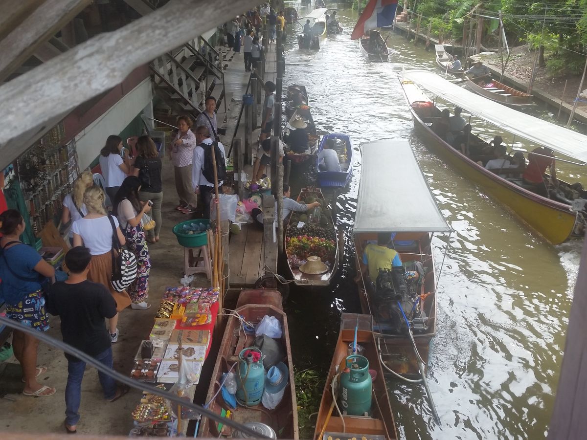 ダムヌンサドアク水上マーケットでは、 タイでしか味わえることができないかもしれない