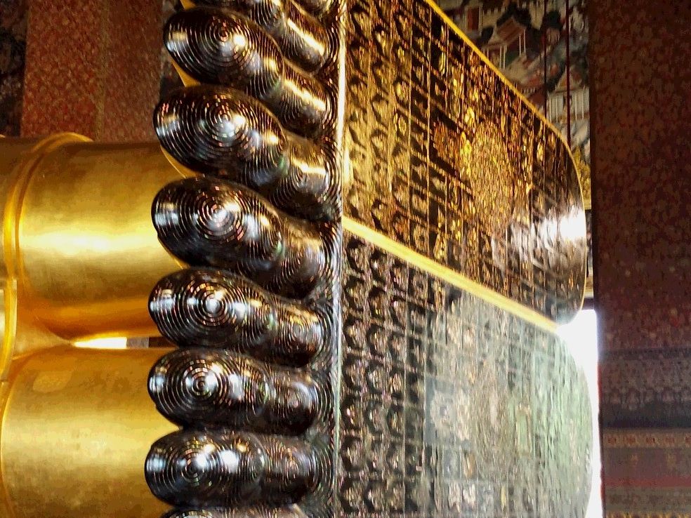 ワットポーでは、全長46m、高さ15mの巨大な涅槃仏を拝むことができます。まだ、修復工事が完了していなかったので、涅槃仏を一周できませんでした。唯、アユタヤ世界遺産でも涅槃仏を拝観できますが、ワットポーの涅槃仏は足裏をじっくりと見てくださいね。