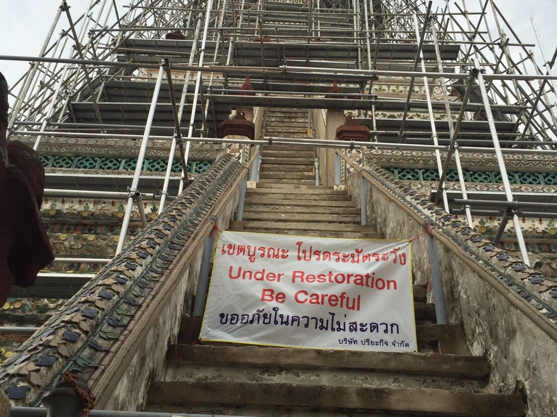 最初に訪れたワットアルンは上の方は改装工事中だったため途中までしか登ることはできませんでしたが、それでもガイドさんは丁寧に説明してくださり、写真がキレイに取れる場所でグループごとに写真を撮ってくれました。
