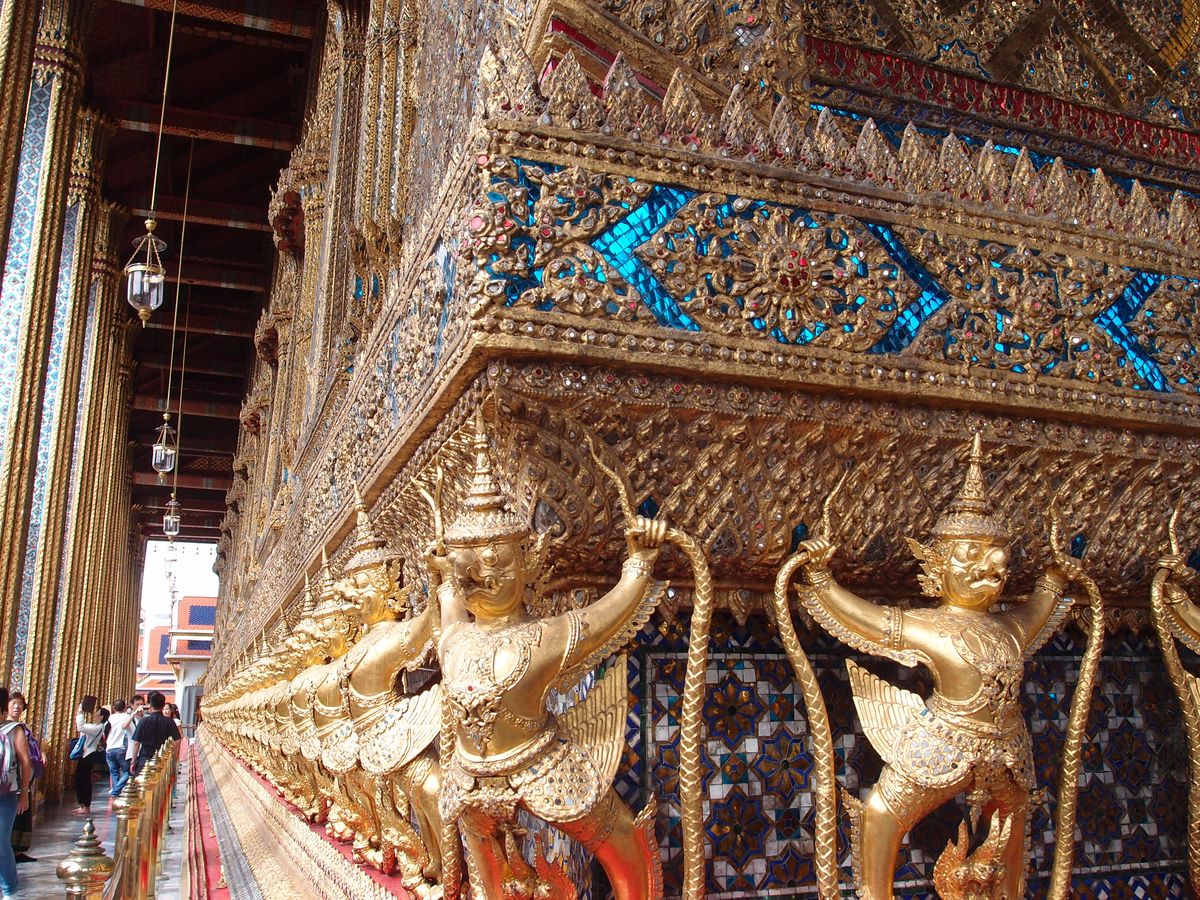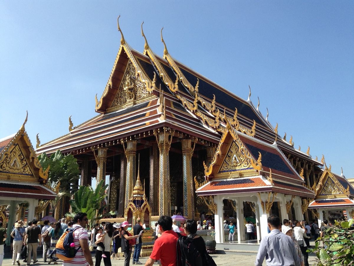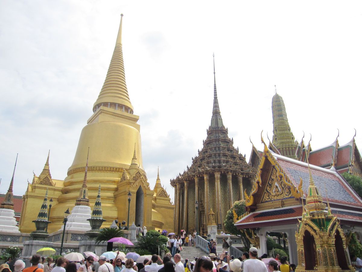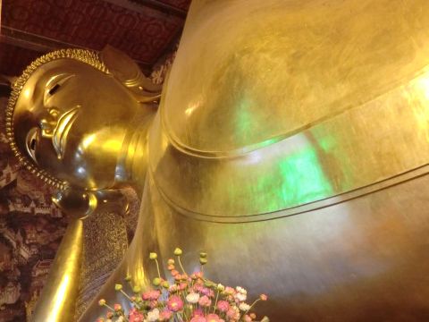 ワット・ポーとエメラルド寺院は特に込んでいて、外国人のほかタイの修学旅行生も多く、金閣寺や東大寺のような感じ。私たちは時期はずれで少人数でしたが、何十人もいたら絶対はぐれると思いますし、説明なんて聞こえないでしょう。
