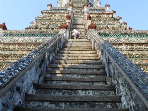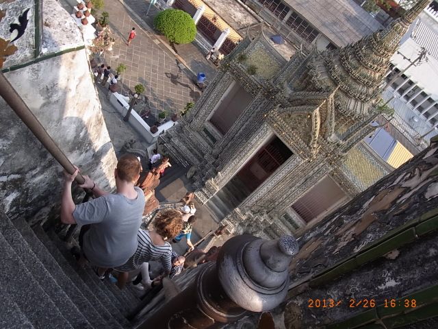 ワット・ポーでは、いつか個人で行ってマッサージを受けてみたい。今回は我慢我慢。ワット・アルンの階段はとても急で、前日アユタヤで登った後、筋肉痛で苦しんでいたので、登るのは断念。見ただけでくらくらする階段です。渡し船にも乗れて、タイ情緒も味わえ、満足できるツアーでした。