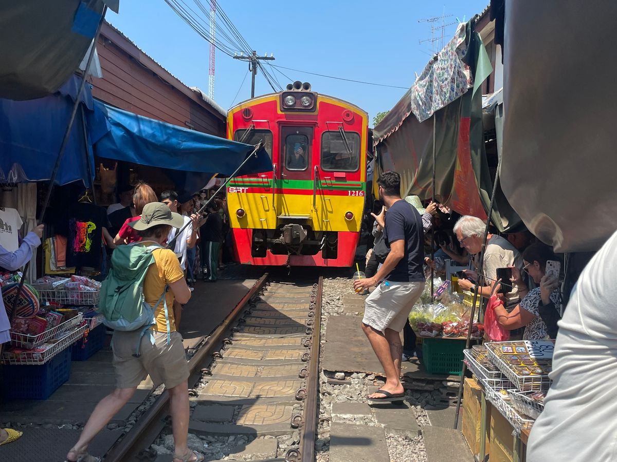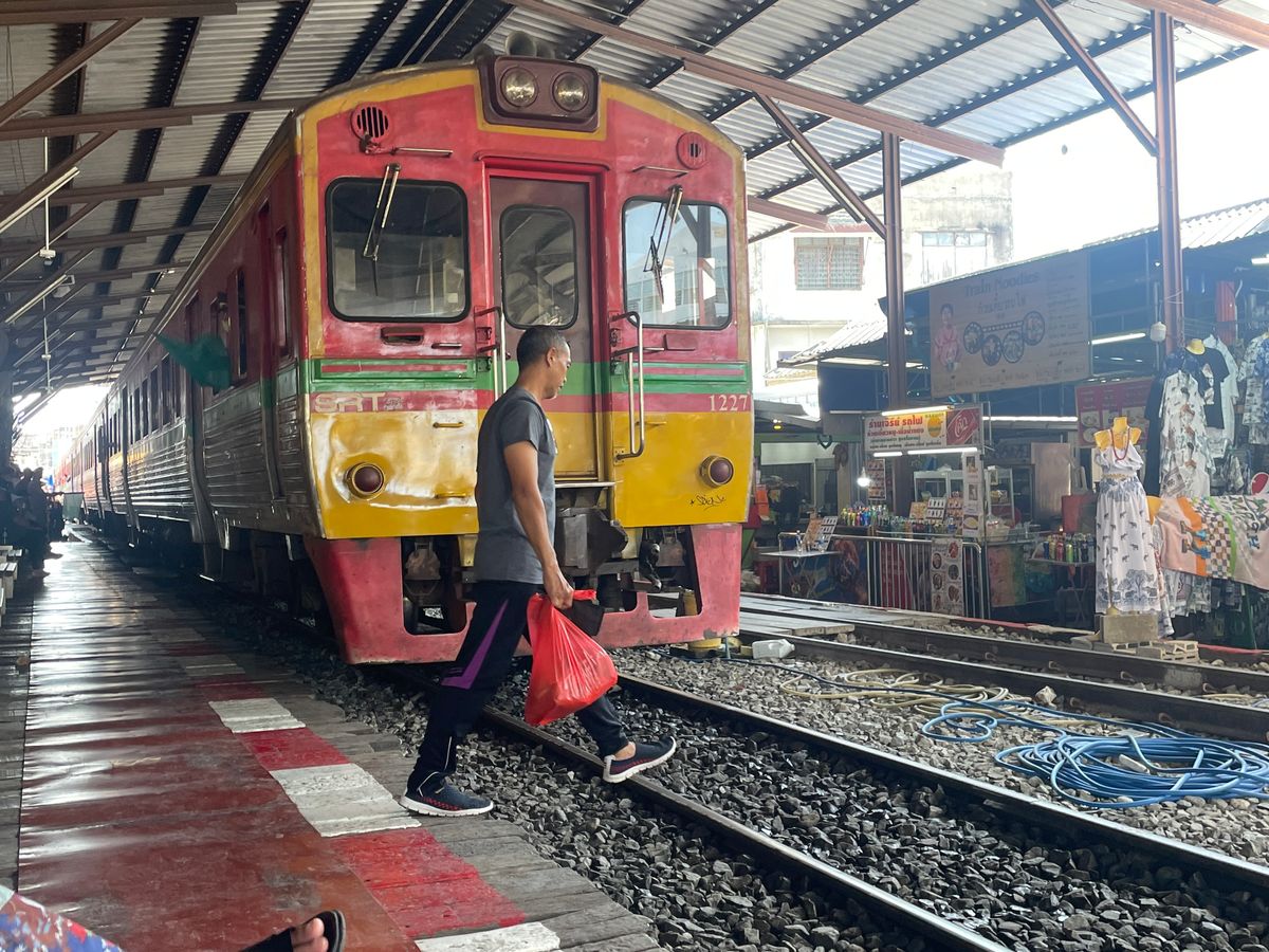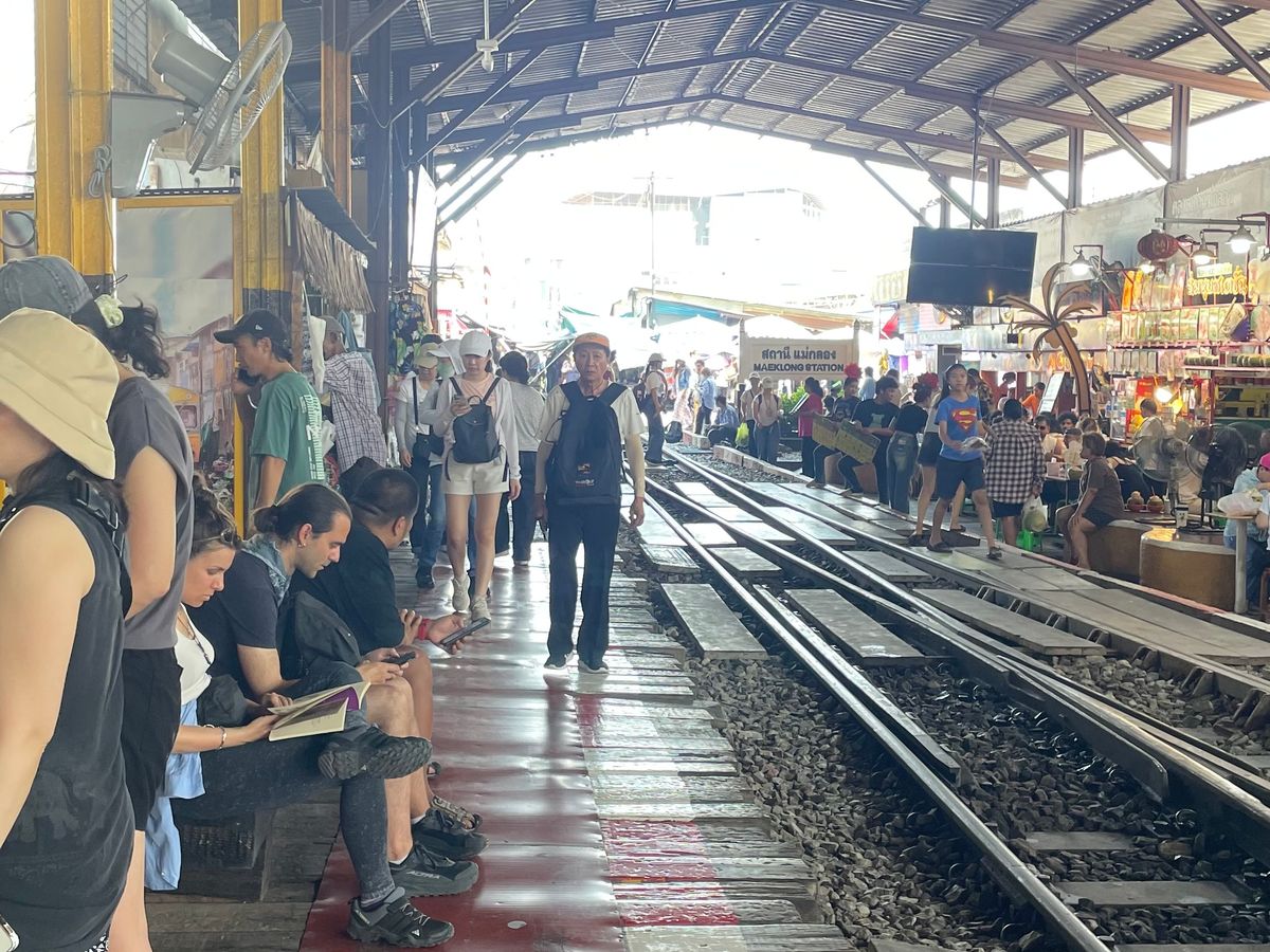 先日、バンコクの「水上マーケットと鉄道市場ツアー」に参加しました。朝早く集合し、バスで最初の目的地であるメークローン市場へ向かいました。この市場は線路上に広がっており、電車が通るたびに商人たちが素早く商品を避ける光景が見られます。間近で見ると迫力があり、観光客も一斉にカメラを構えるなど、非常に活気のある場所でした。