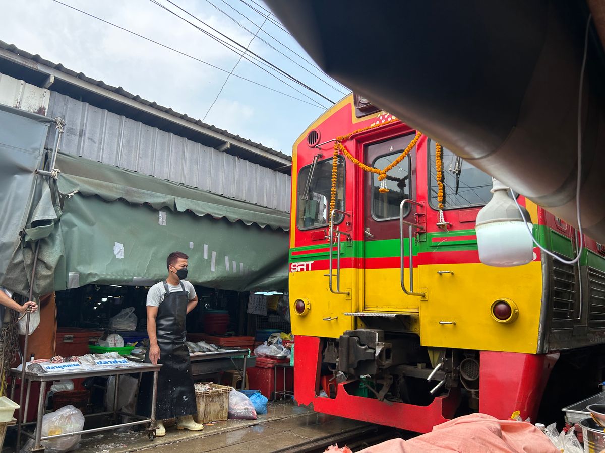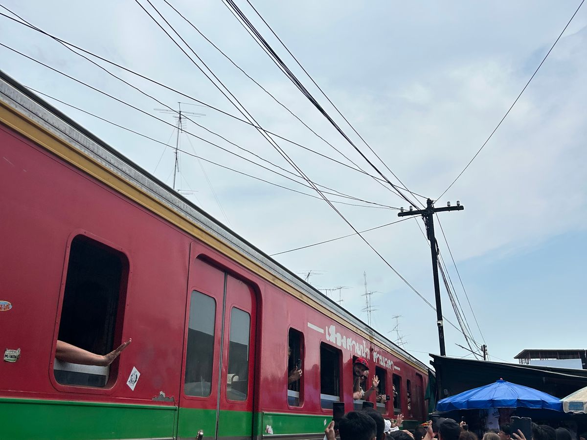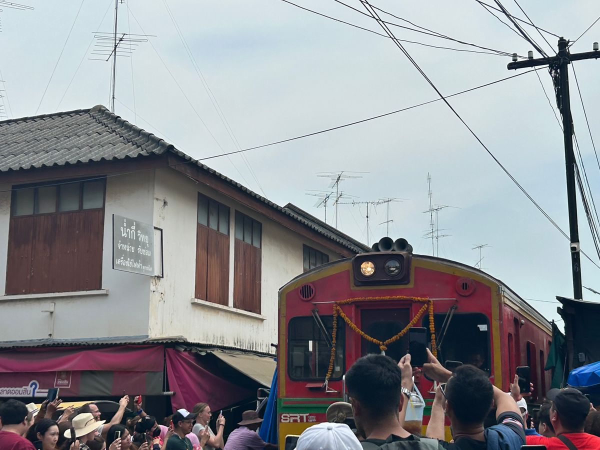 先日、バンコクの「水上マーケットと鉄道市場ツアー」に参加しました。朝早く集合し、バスで最初の目的地であるメークローン市場へ向かいました。この市場は線路上に広がっており、電車が通るたびに商人たちが素早く商品を避ける光景が見られます。間近で見ると迫力があり、観光客も一斉にカメラを構えるなど、非常に活気のある場所でした。