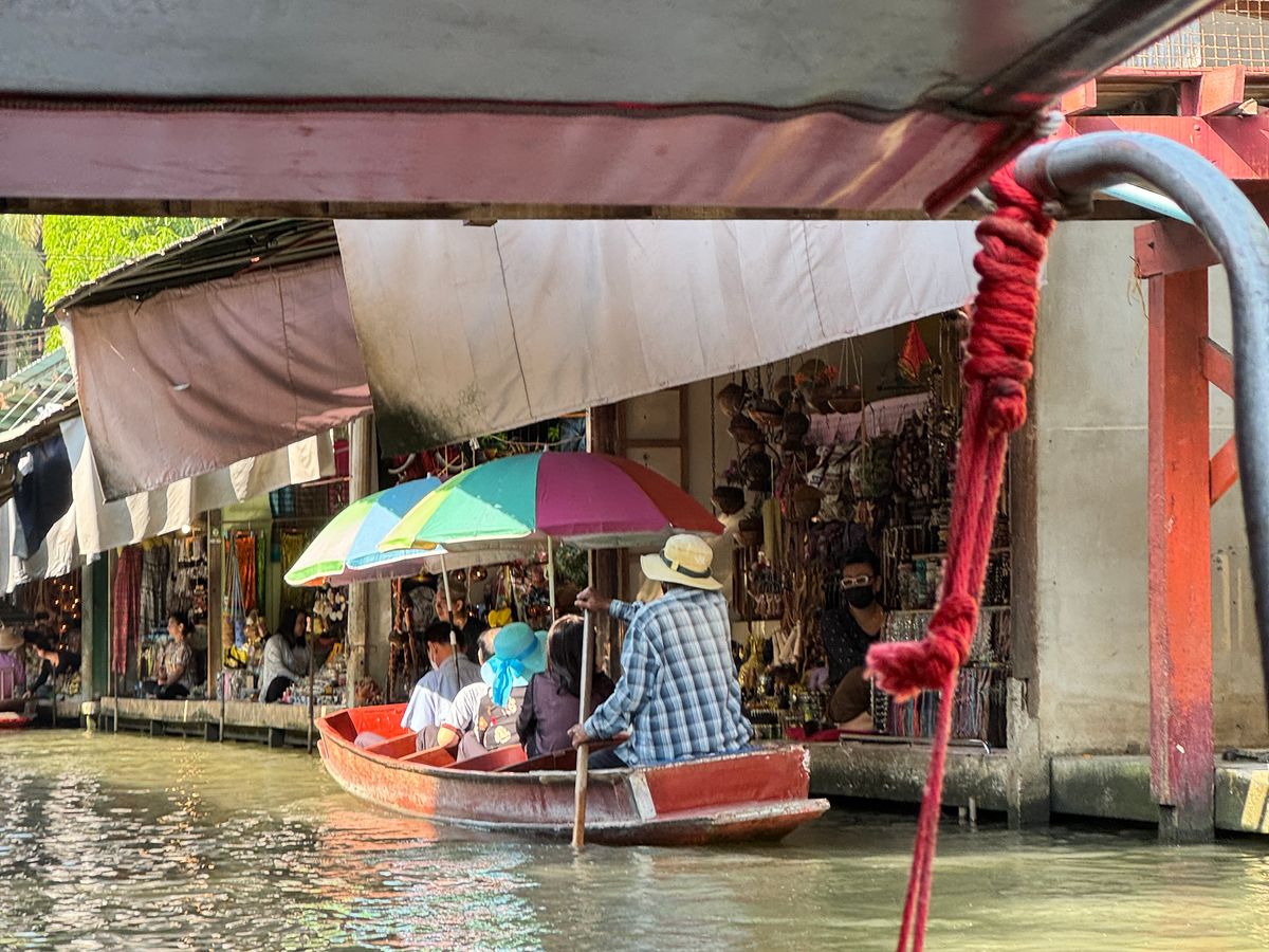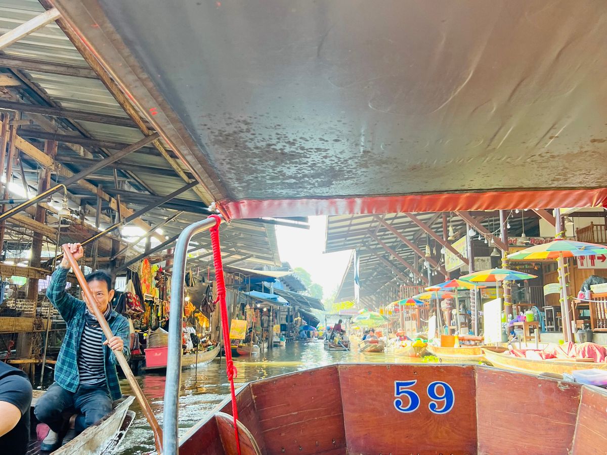 バンコクから水上マーケットまでバスで2時間、水上マーケットはいろいろあるみたいですが私達が行った所は、小さめの水路を使った観光客向けのマーケット。売ってるものはタイのどこでも見るようなもので魅力は無かったですが、雰囲気を楽しむには十分です。ボートもアトラクションみたいで直線な水路ではスピードを出してくれて子供達もキャッキャっと楽しんでました!