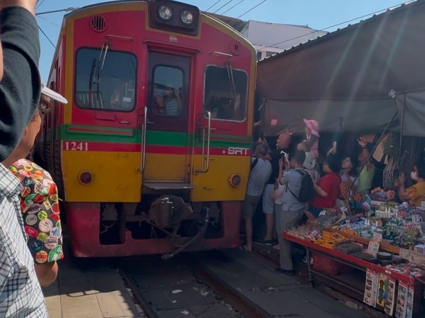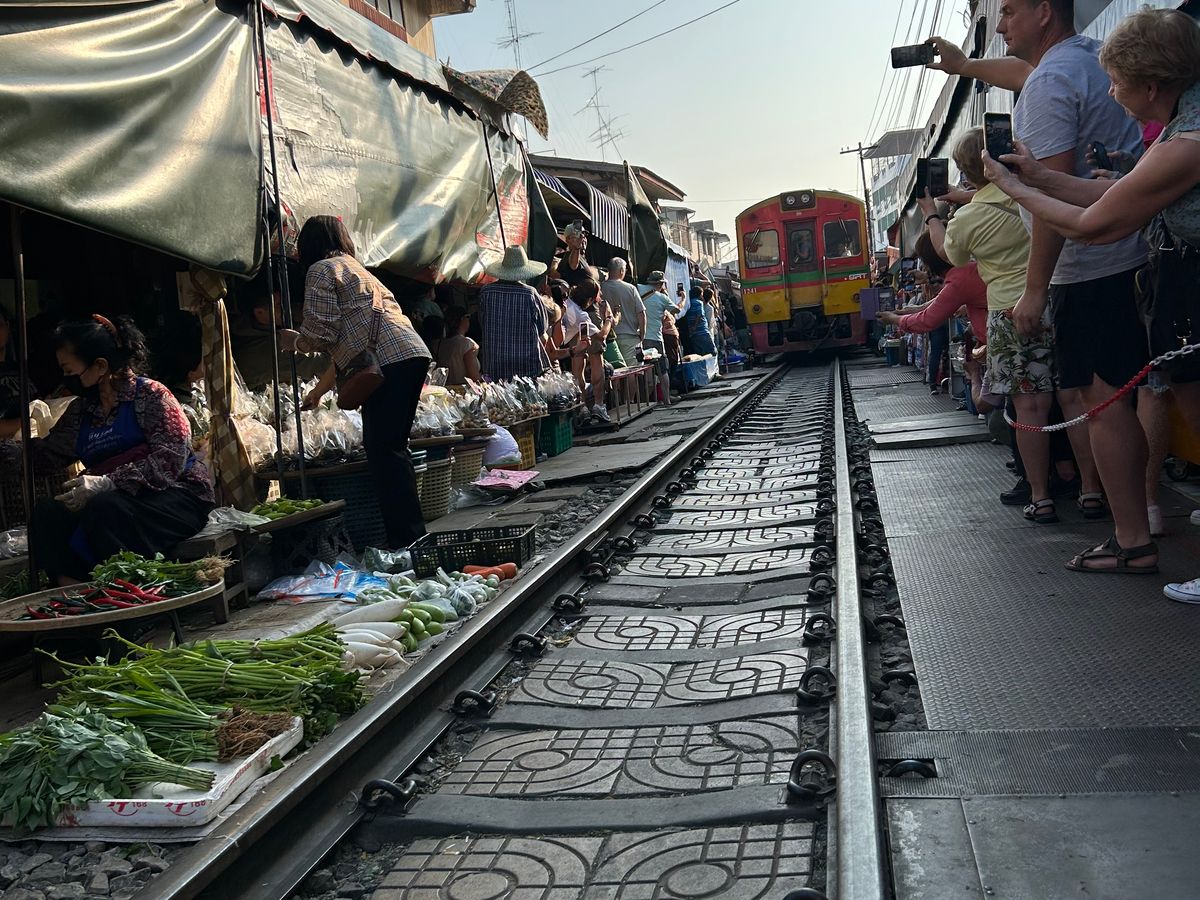 メークロン市場では迫力ある鉄道に感動でした。