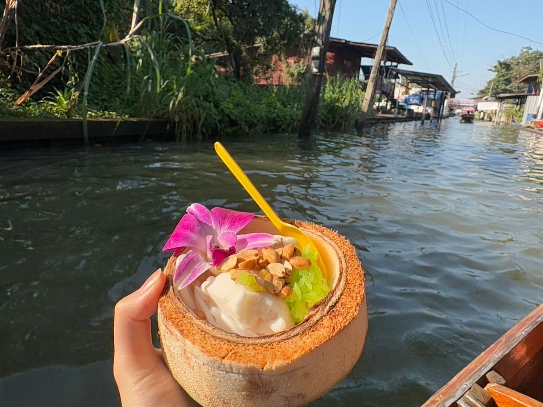 水上マーケットでは、添乗員さんお勧めのココナッツアイスを食べました!ココナッツの食感と香りがあり美味しかったです。