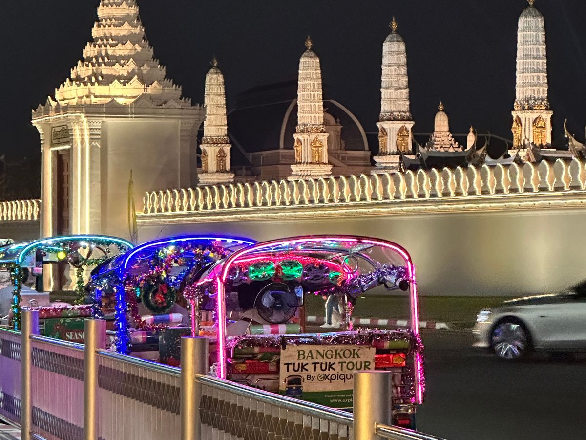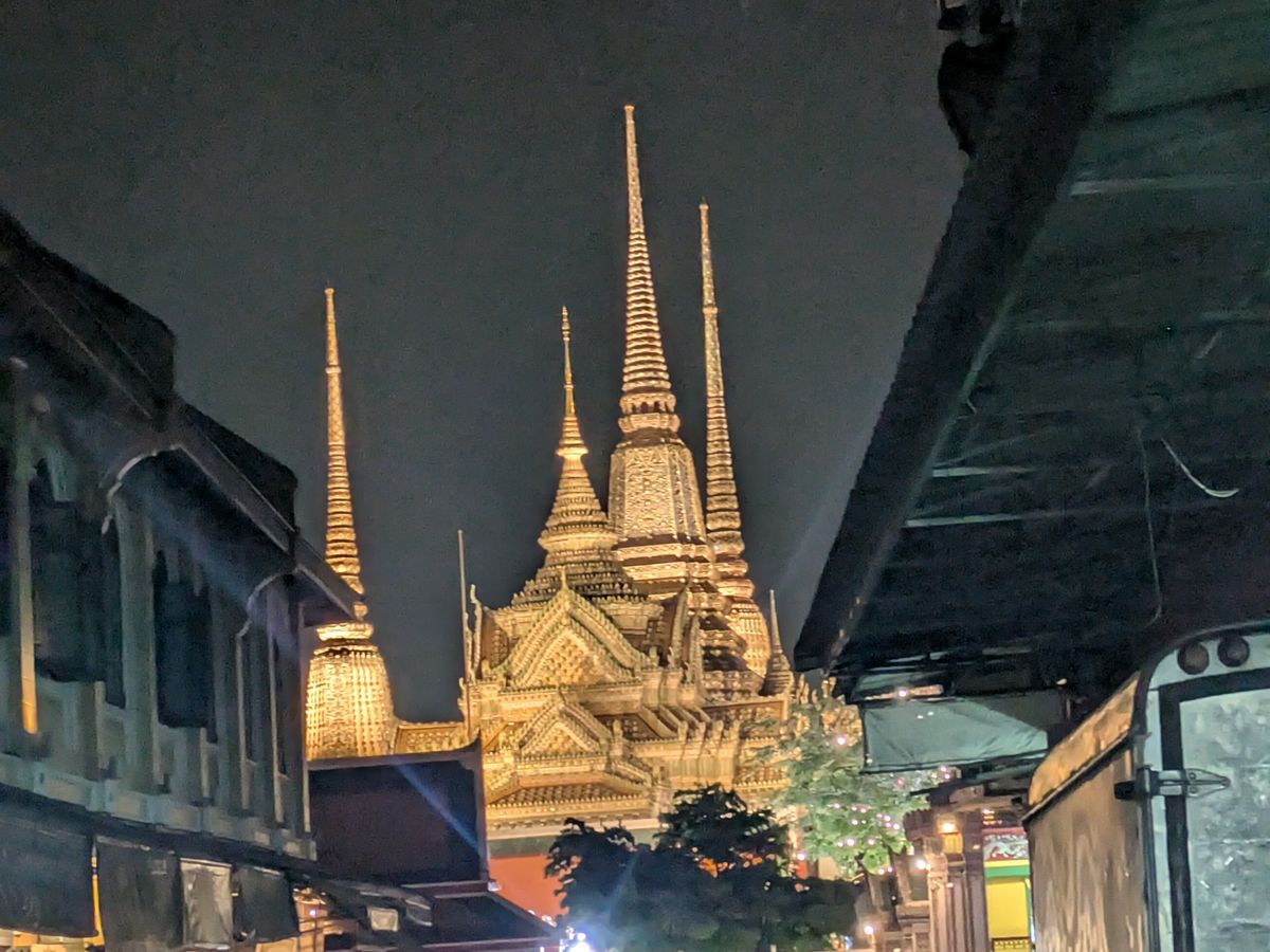 最後は、王宮のライトアップを見て解散。ツアーでもないと夜に王宮に来る機会がないので、これはこれで良かったです。帰りもガイドさんがトゥクトゥクと交渉してくれたので、安心して地下鉄駅まで戻ることができました。