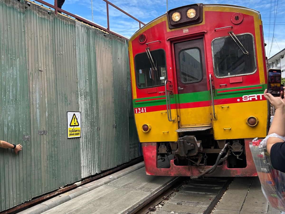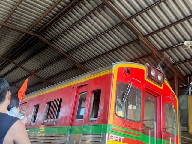 メークロン市場は、1番人が多い時間帯でしたので、想像以上の人の数でした。電車が通り過ぎてからは、そばのカフェに座って戻ってくる電車を見ることができ、その頃は人も少なくなっていたのでゆっくりすることができました。