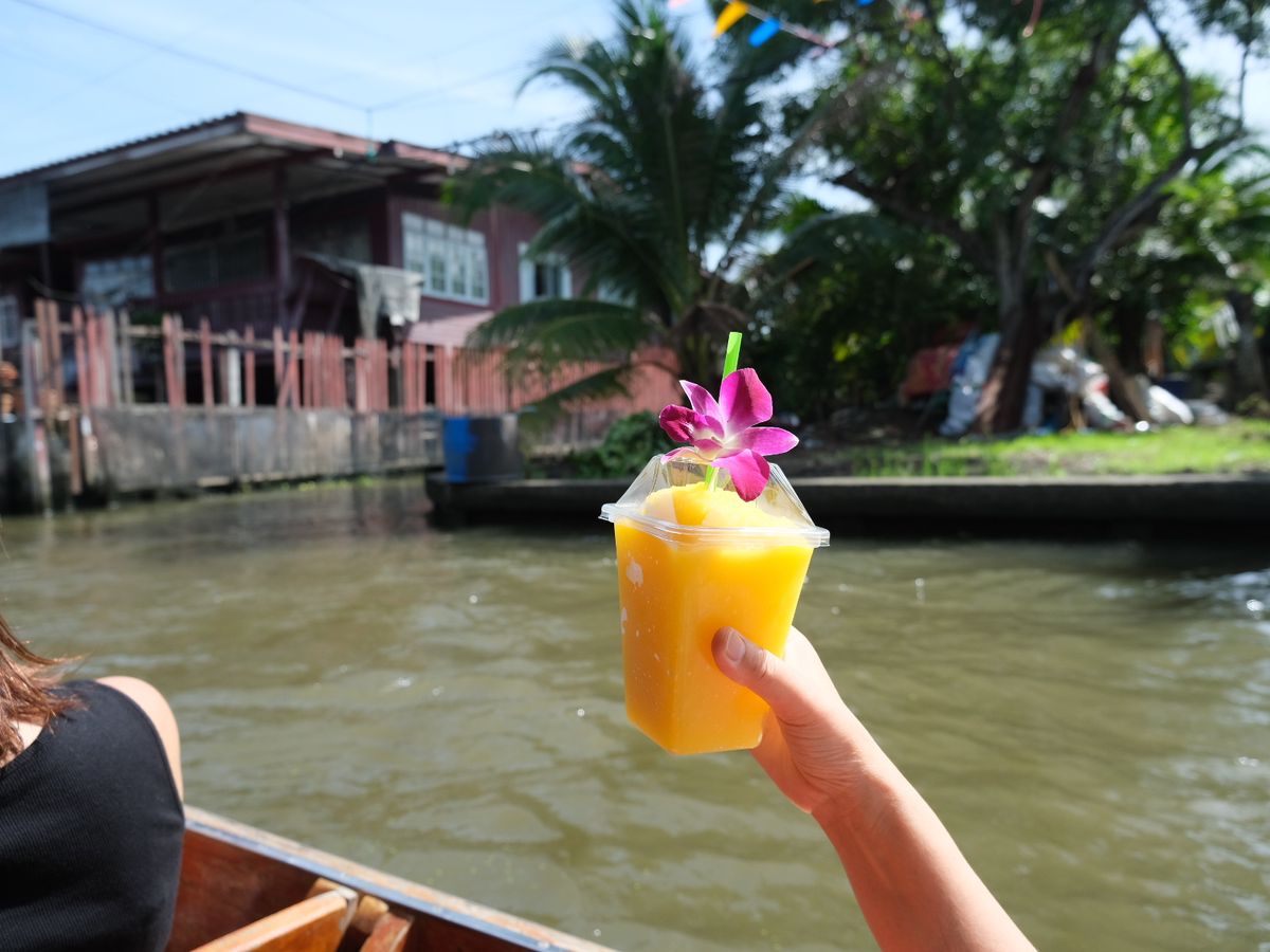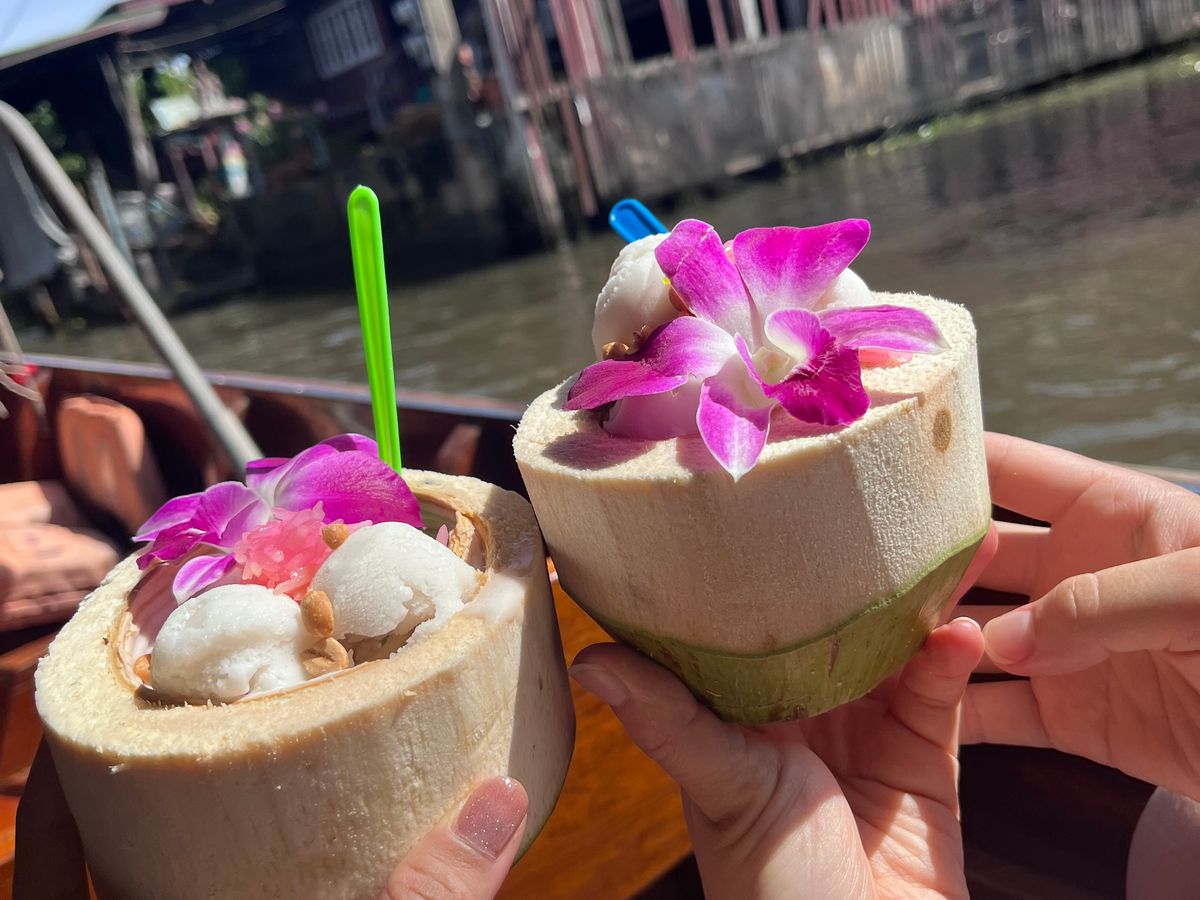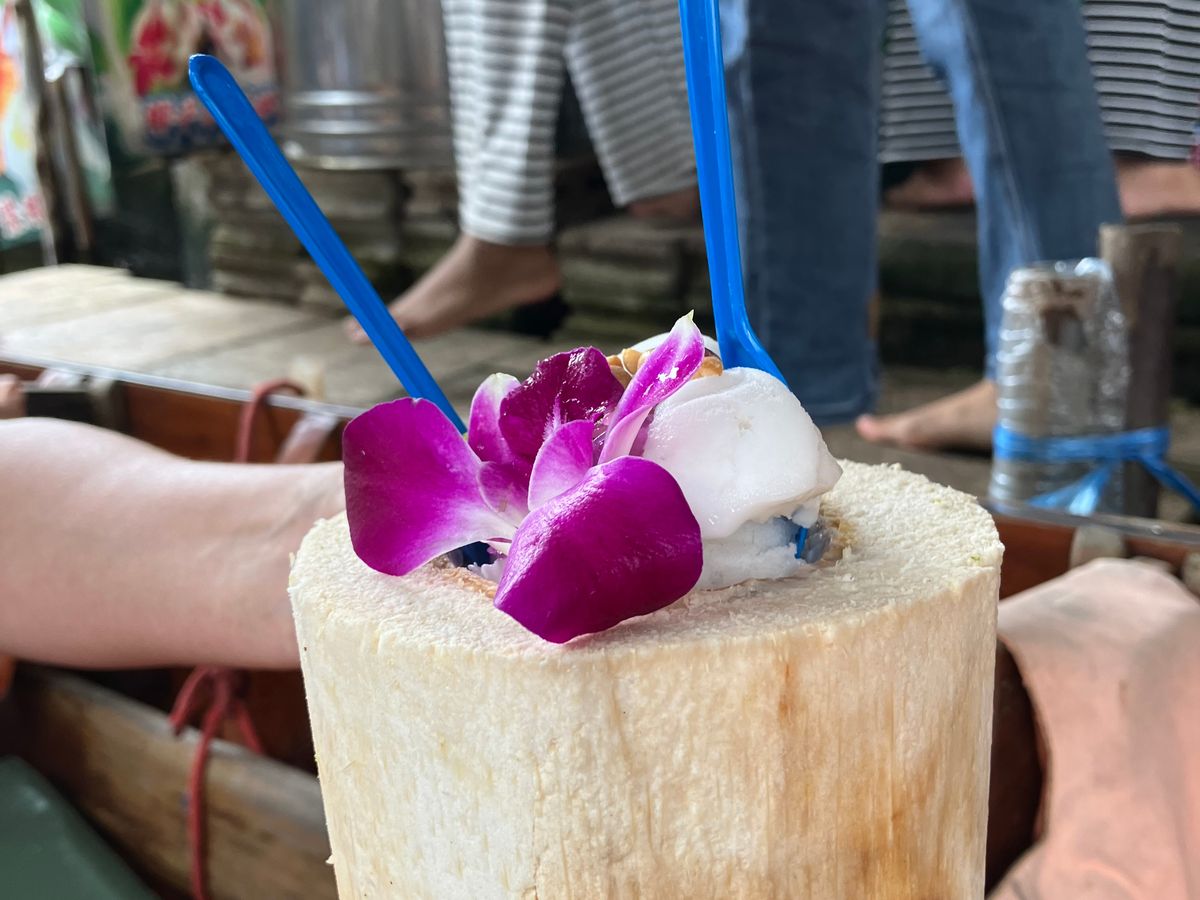 最初に水上マーケットに行き、ココナッツアイスを食べて美味しかったです!