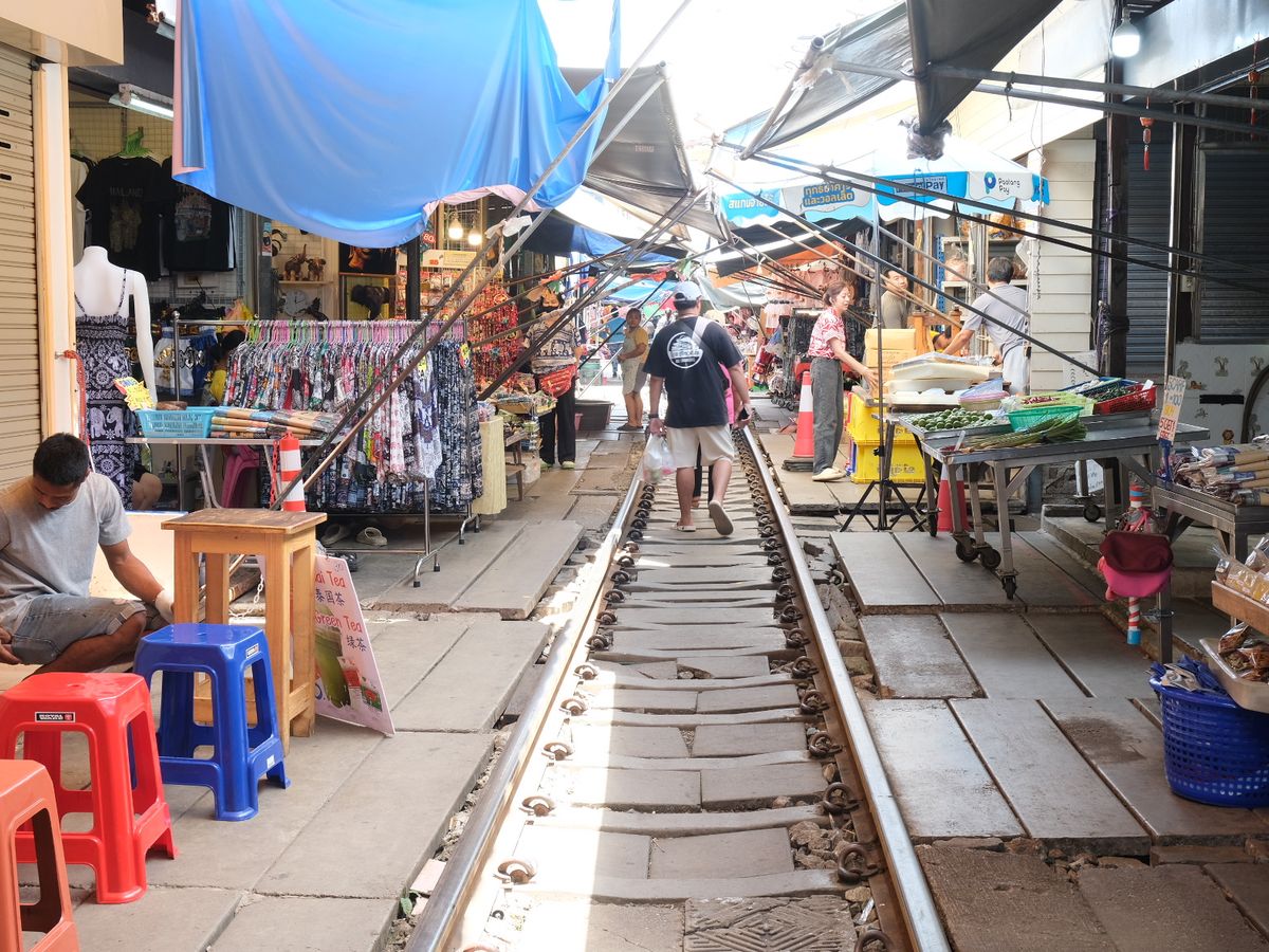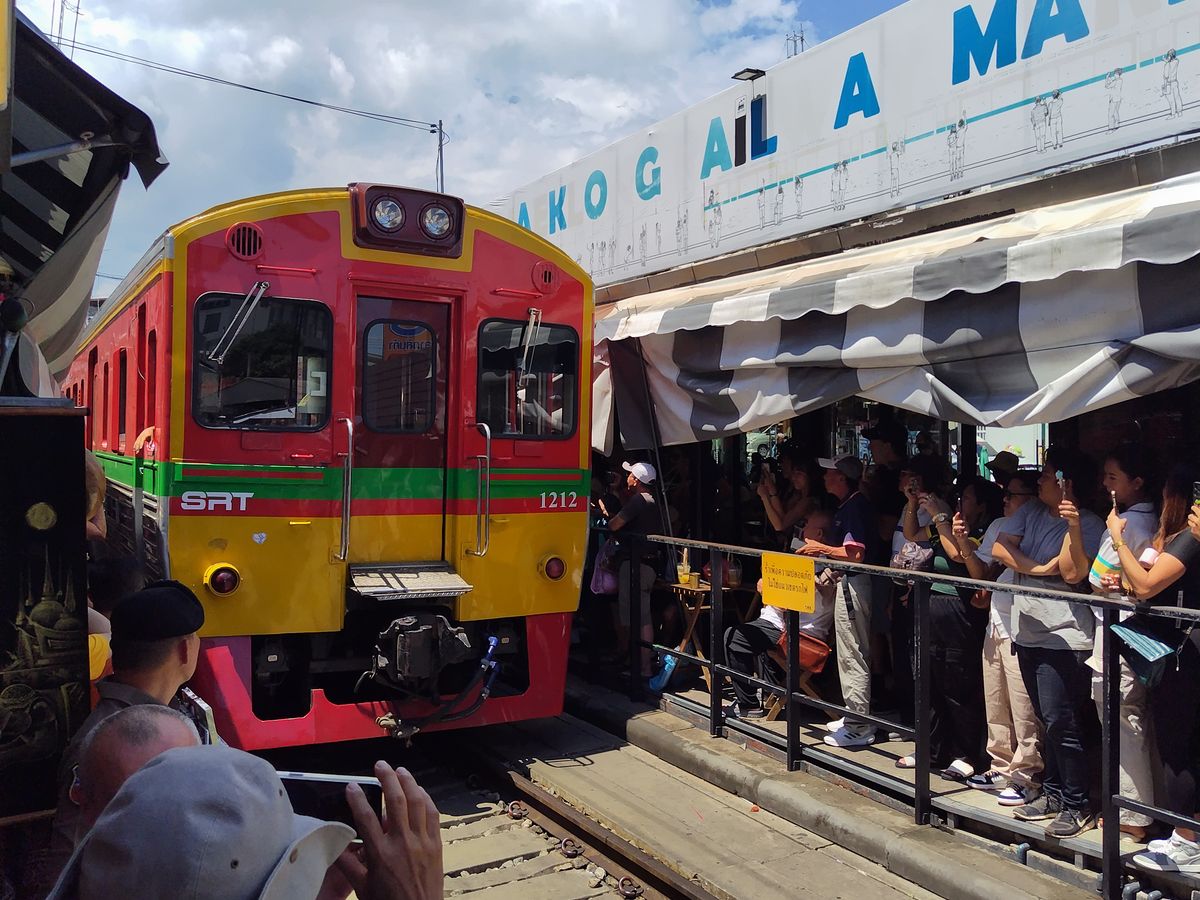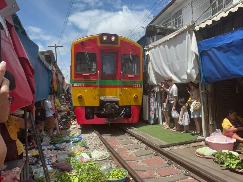 メークローン鉄道市場は、いろいろなものが売っていて楽しく、列車が間近に通った時はスリルがありました。