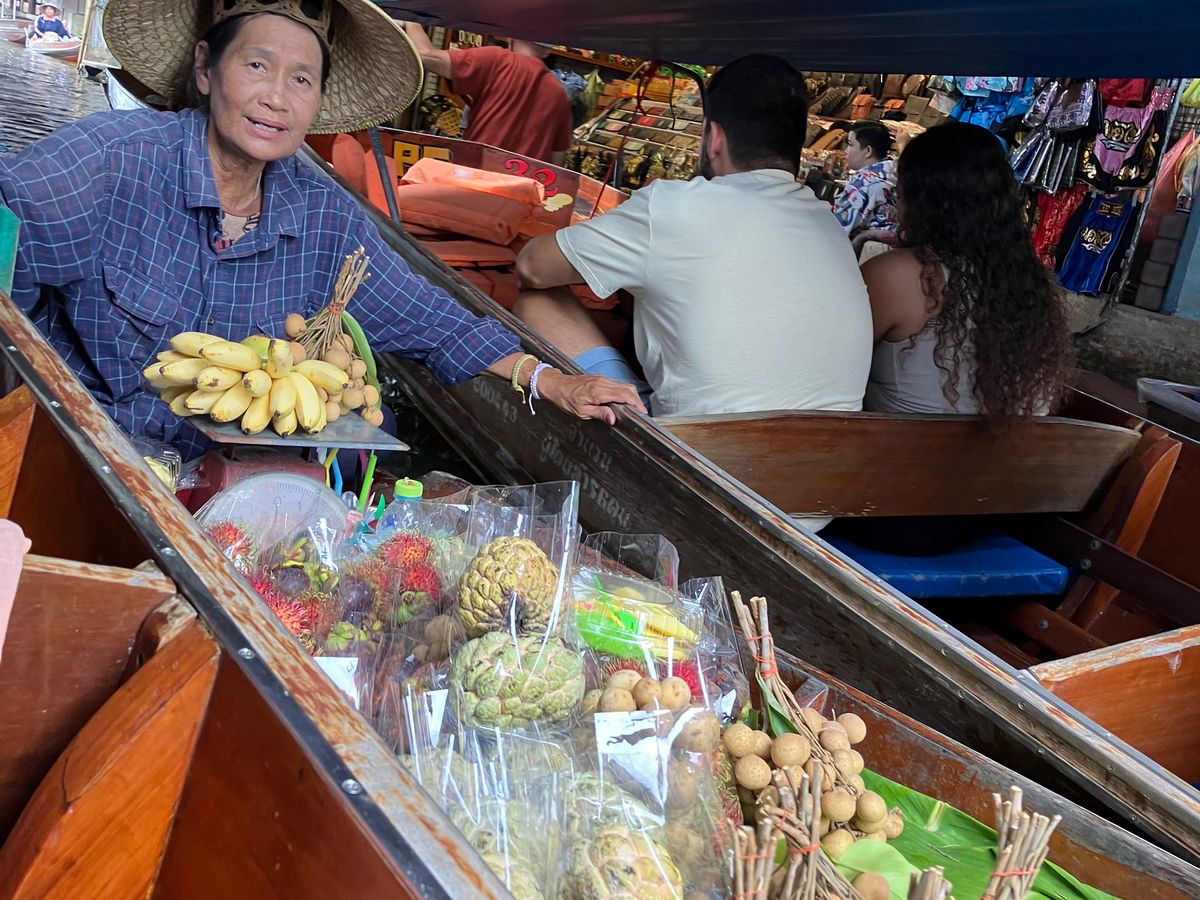 水上マーケットは、たくさん船がひしめき合って行き交い、暑い中でも途中でデザートを頼んだりして、楽しく過ごせました。