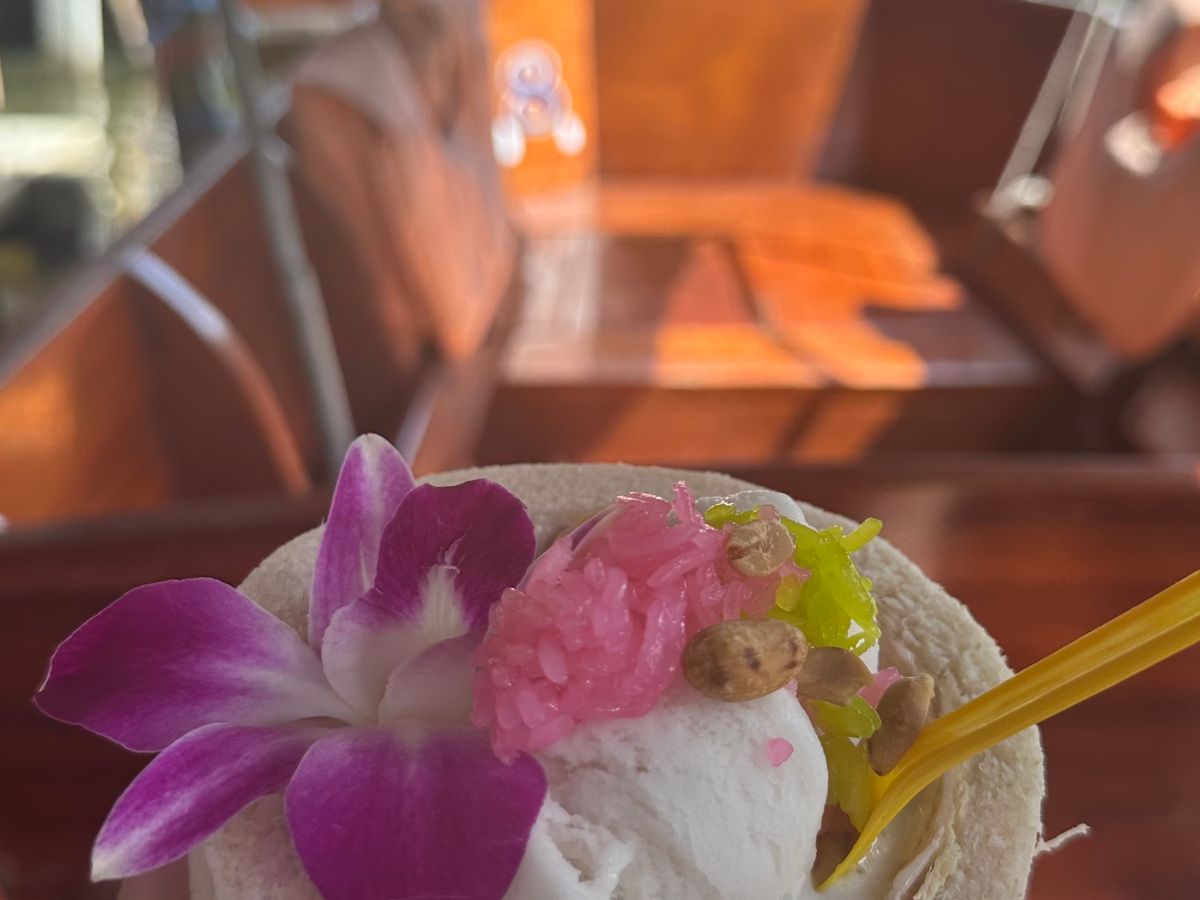水上マーケットではココナッツジュースとココナッツアイスが味も美味しくて見た目も可愛くてよかったです