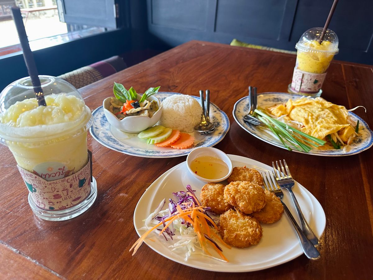 ランチをこの市場でフリーで屋台飯を想像していましたが、ガイドさん紹介の市場の一角の食堂でした。タイのおうちのガパオライスと言った感じで美味しく頂きました。80バーツの自費。