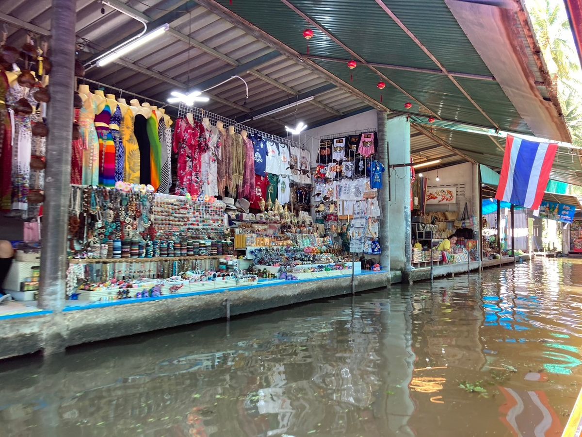 2箇所目の市場は、歴史ある市場の様子や現地の人々の暮らしが間近で見られたことが興味深かったです。ここはタイでイメージするいわゆるカラフルポップな映えマーケットとは違うかもしれません。私はこの日までに流行りのマーケットを沢山見たので逆に目新しく、店先の奥に見えるお宅のリアルな暮らしぶりや、昔使われていたと言う川辺に浮かぶ古い市場の建物、おばちゃん達が作る現地の屋台グルメ(ちょっと食べる勇気は出なかったですが)、生活用品や野菜が所狭しと売られている様子、古い市場ならではの埃っぽさとごちゃごちゃ感が面白いと感じました。平日は閉まっているお店が多く閑散としていましたが、自力では行かないスポットが見られて良かったです。