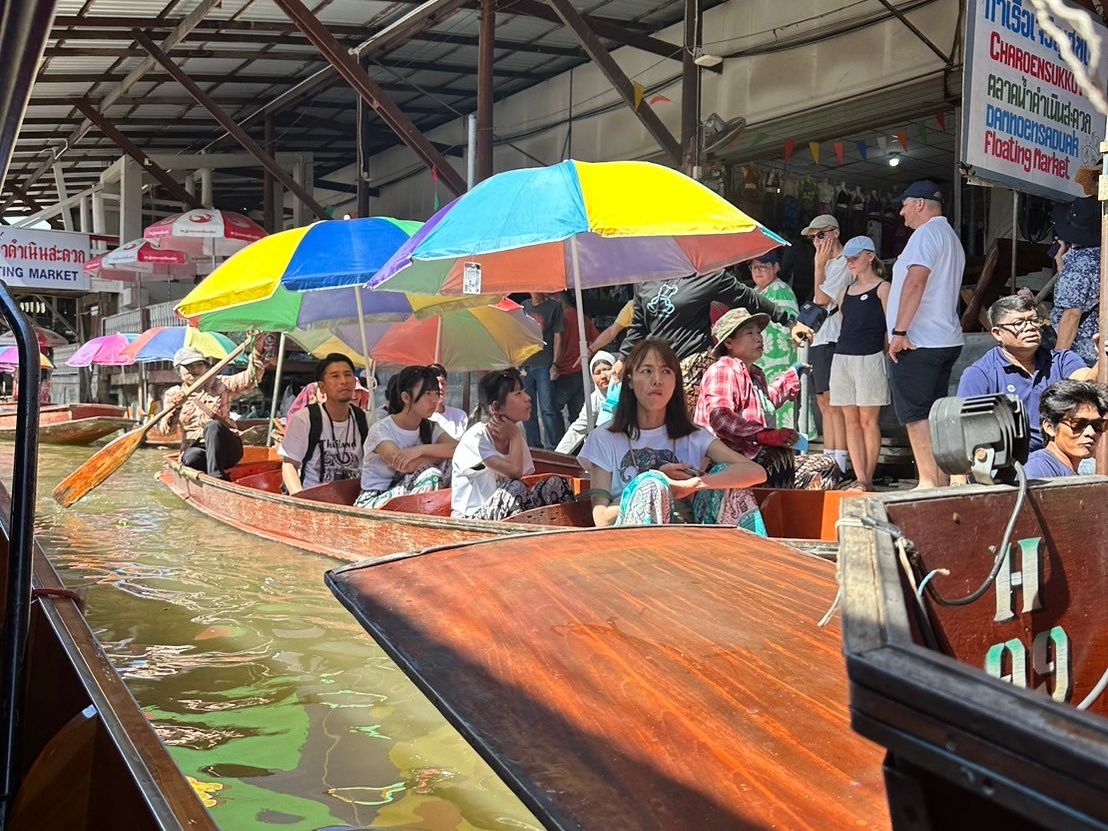 初めてのタイ旅行。『行きたいけど、バンコクから遠いな~』と思っていた場所が、滞在中にツアーで予約が取れたので夫婦で参加。日本語の分かる穏やかで優しいガイドさんが付いてくれたので安心して、多国籍の方達と一緒に効率よく観光を楽しむ事が出来ました。参加者全員での写真撮影もあり、エアードロップで貰らえたので良い思い出も増えました。鉄道市場も水上マーケットもガイドブック通りでたくさんの人達で賑わっていて楽しかったです。