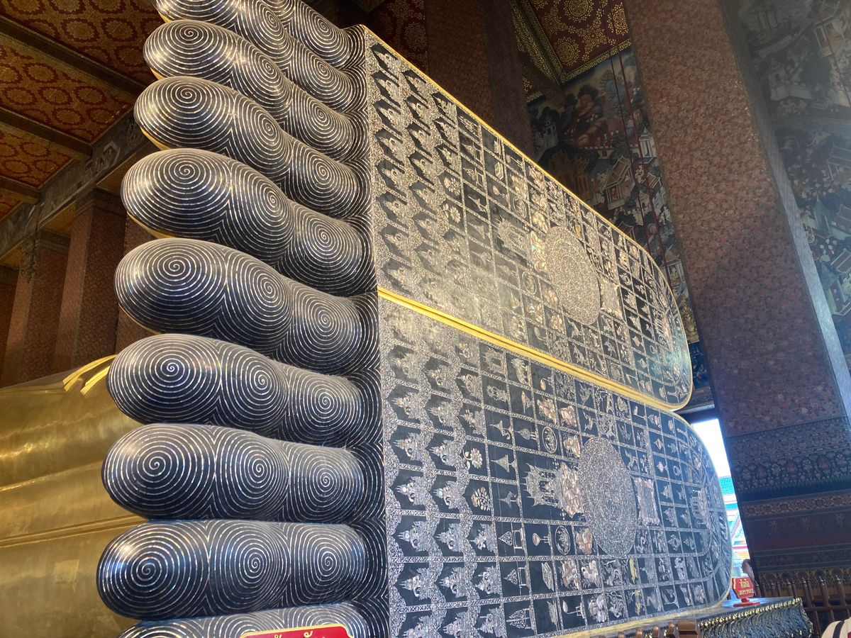 1箇所目のワット・パクナムは、寺院の歴史やコロナ禍でのお話を聞いたり、お目当ての綺麗な天井画と一緒に写真を撮ったりしました。最初に行ったので割と空いていて、人が入らない写真も撮影できました。自由に散策する時間もあり、天井画をたっぷり堪能できました。