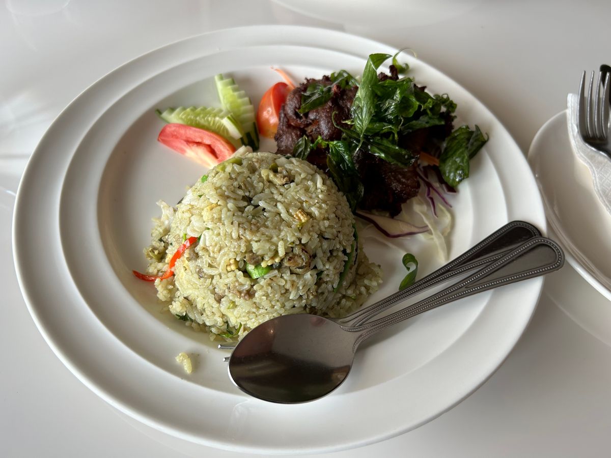 ランチはタイ料理と中華料理が合わさったようなもので、日本人の口に合うような味でしたがそこそこでした。
