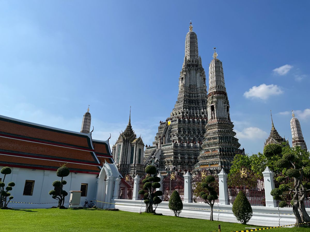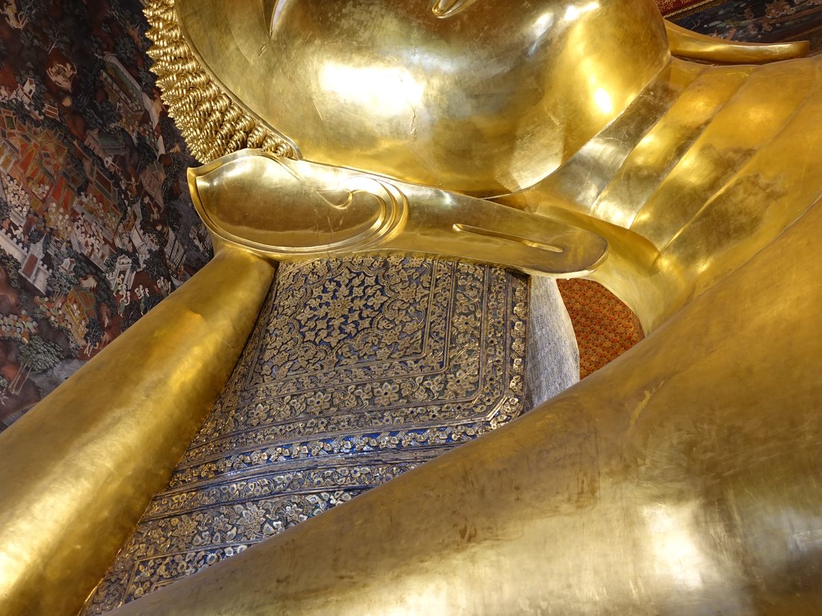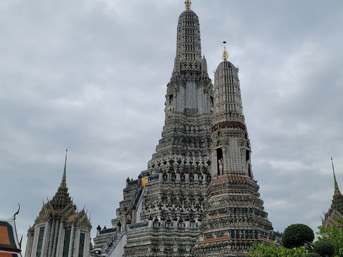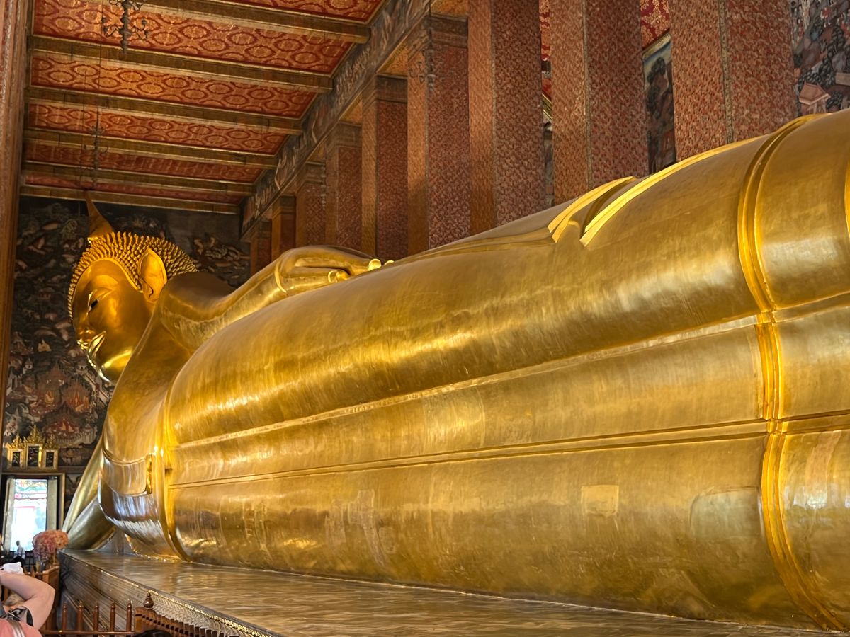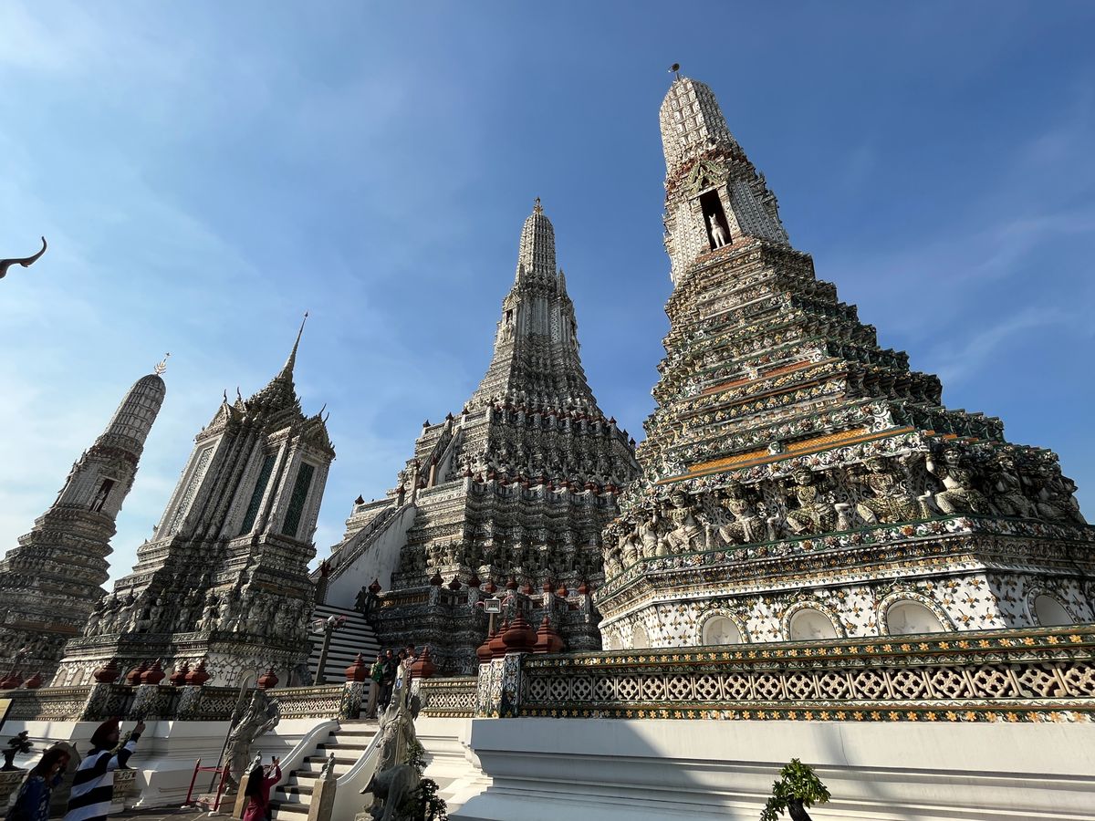 ガイドさんからエメラルド仏様の衣替えは王様しか行えない式典だと教えて頂き、沿道で王様をお出迎えするタイの人々とか、車中から眺めながら、タイの文化を違う角度から垣間見ることができました。ワット・ポーはとても大きいし、ワット・アルンは形や装飾が芸術的…!