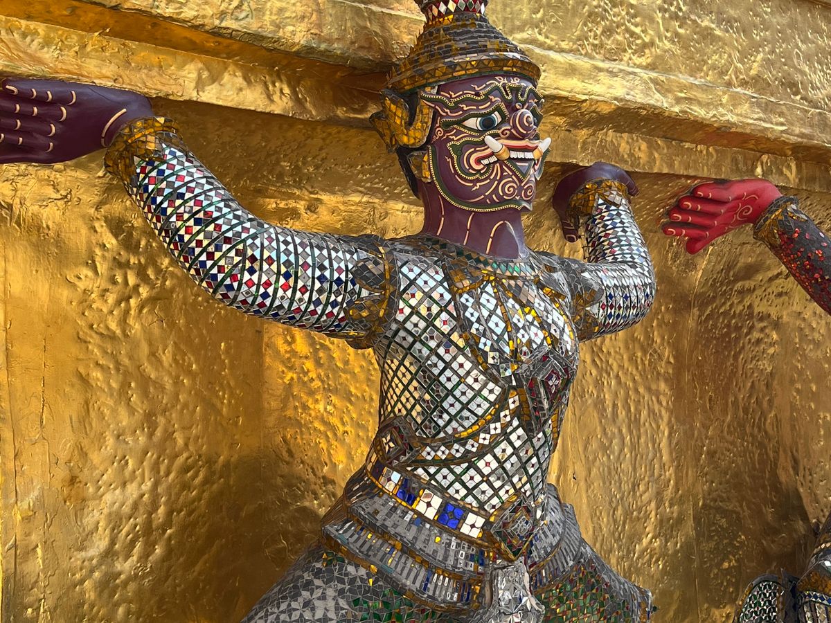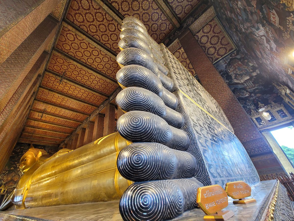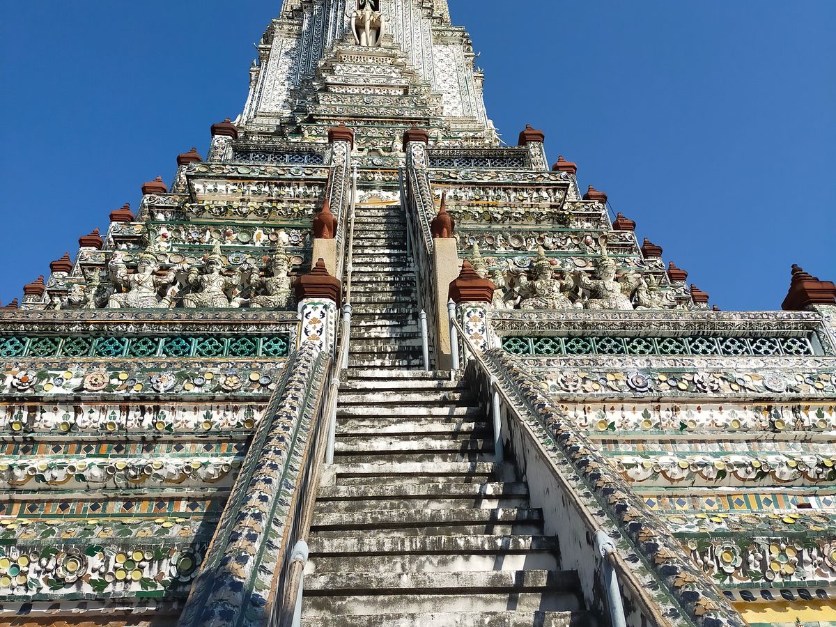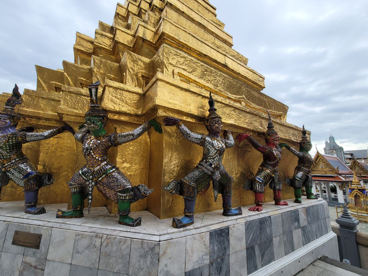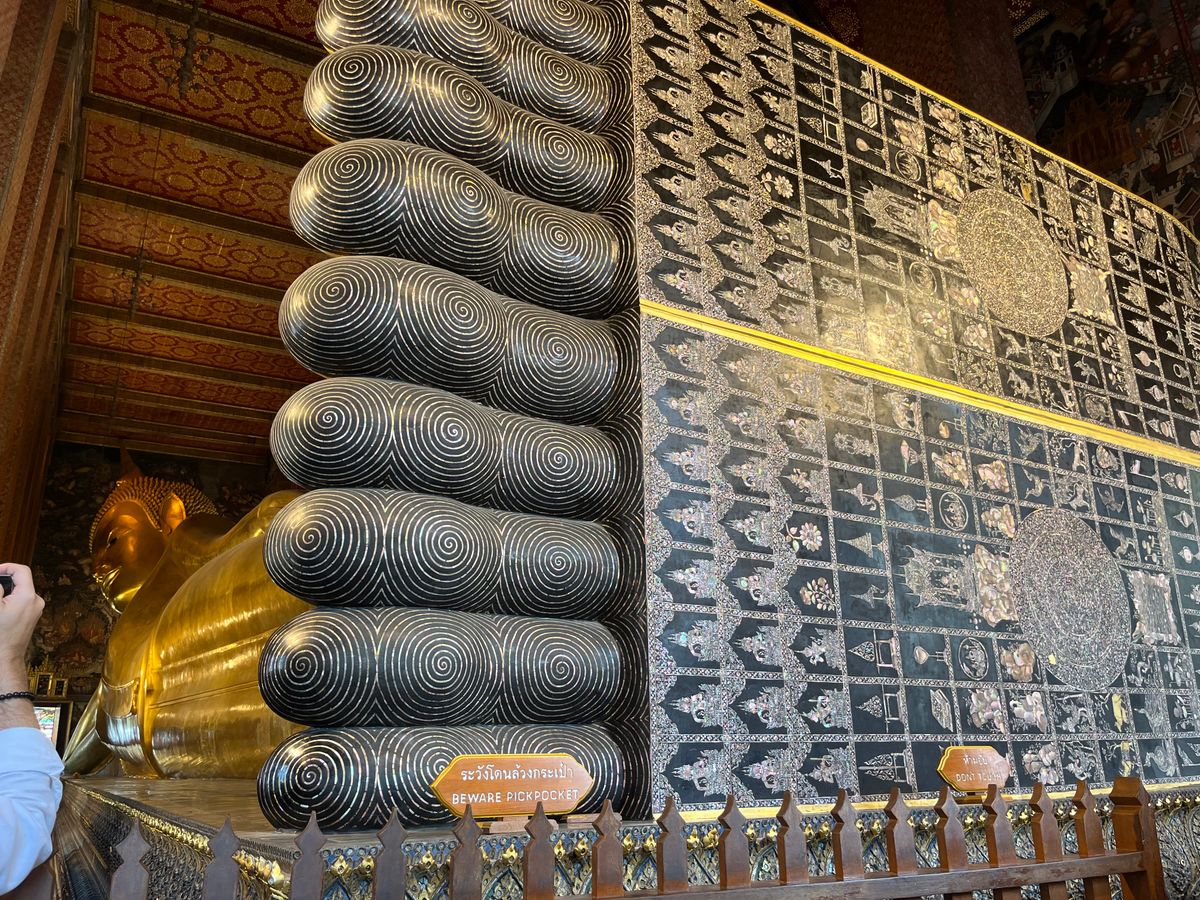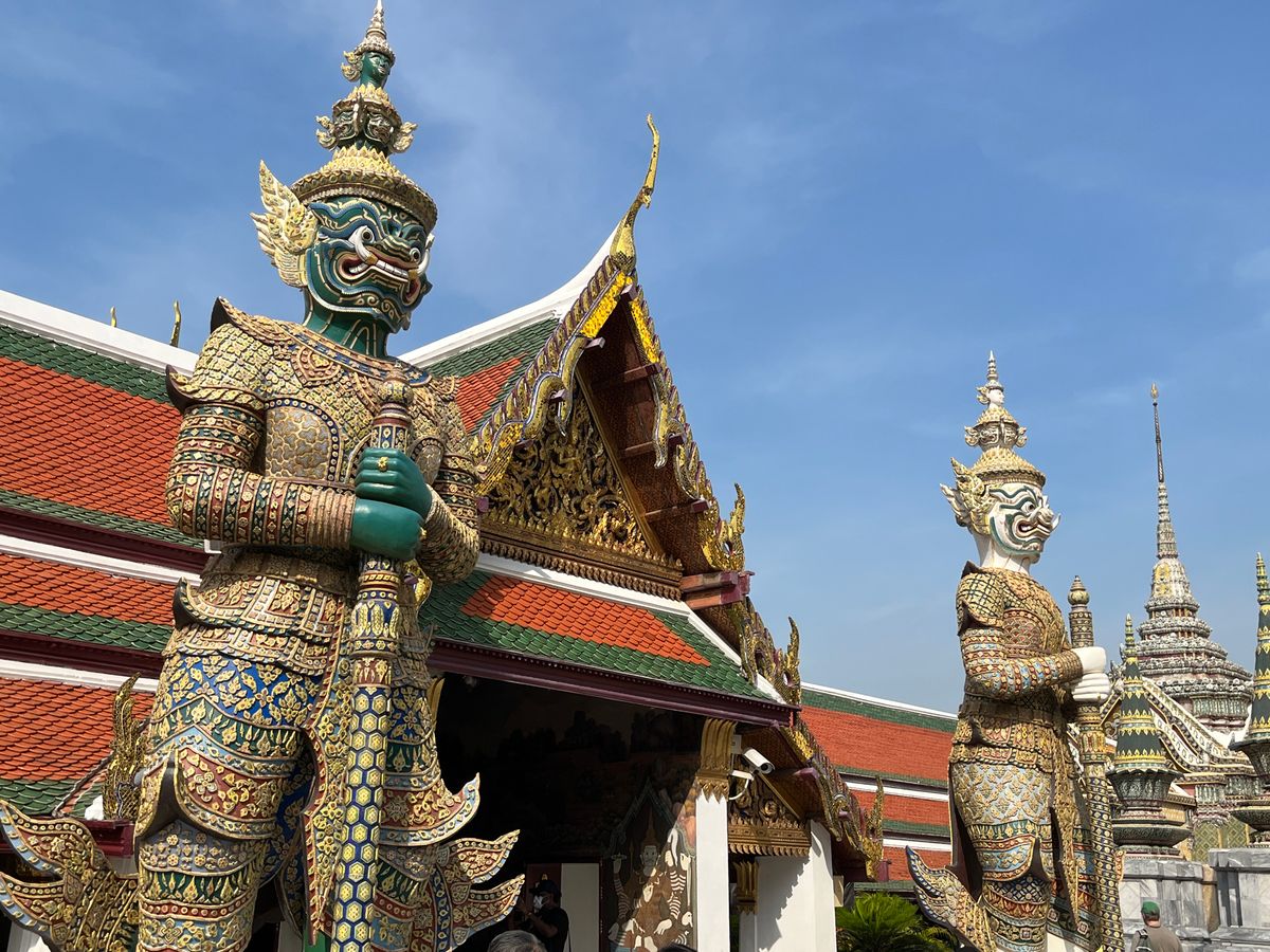 ガイドさんからエメラルド仏様の衣替えは王様しか行えない式典だと教えて頂き、沿道で王様をお出迎えするタイの人々とか、車中から眺めながら、タイの文化を違う角度から垣間見ることができました。ワット・ポーはとても大きいし、ワット・アルンは形や装飾が芸術的…!