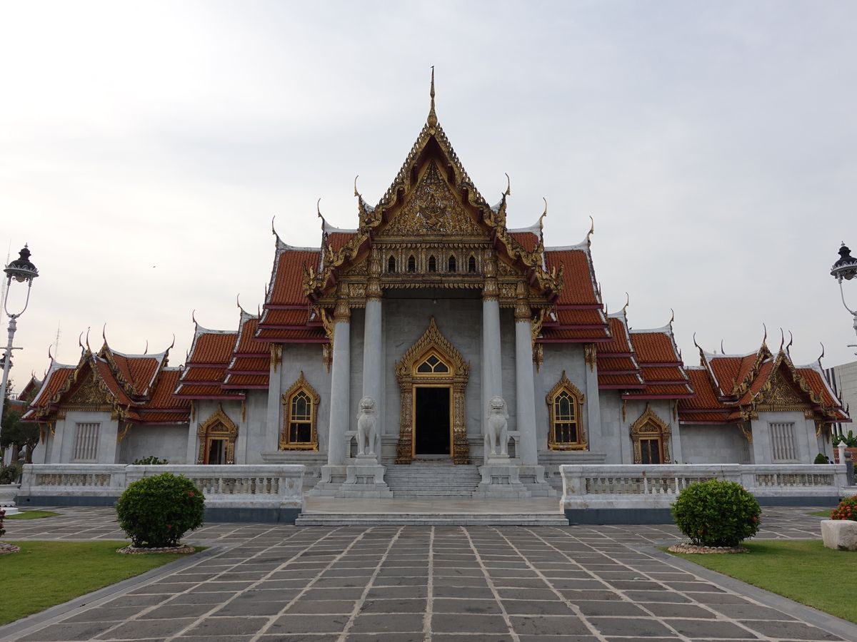 大理石寺院も美しいお寺で、夕方なのに床がぽかぽか熱いところから、タイの日差しの強さを実感しました。