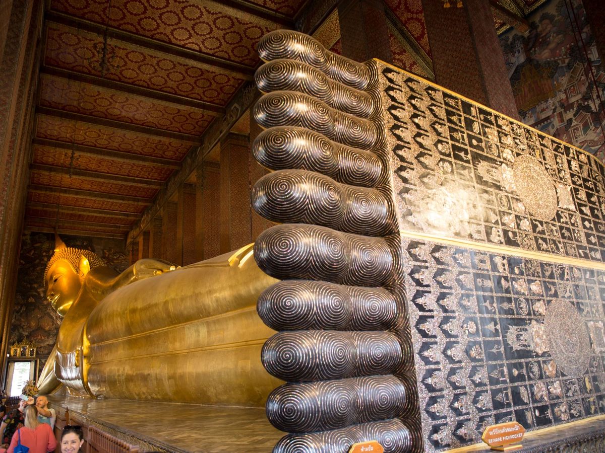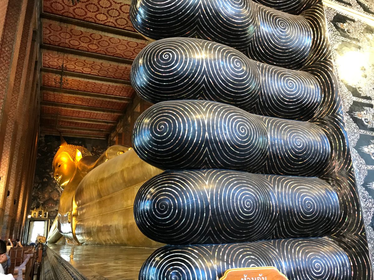 ワットポーでは仏像の大きさにも驚きましたが、足の裏の螺鈿の美しさに魅せられます。
