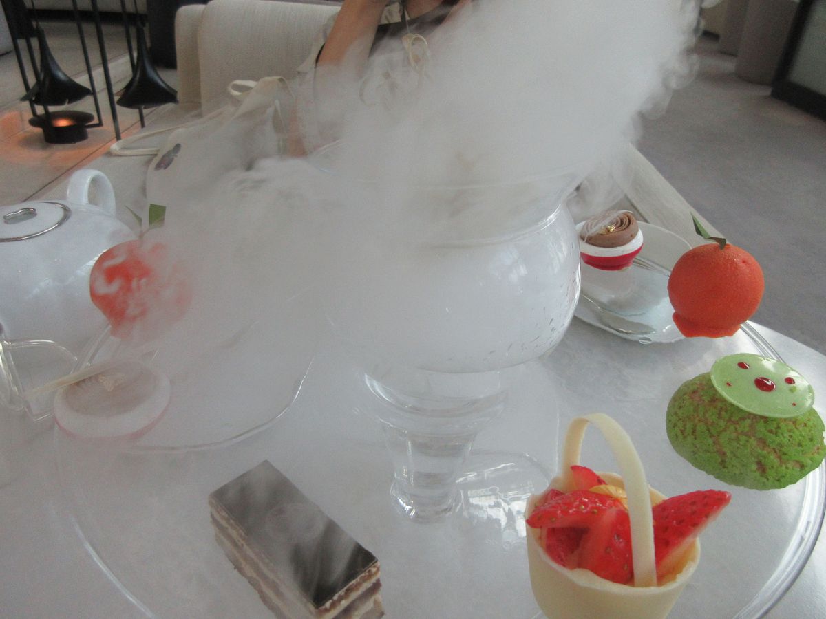温かいスコーンから始まり サンドイッチ 次のケーキの時にはドライアイスのスモークが出て 感動の演出でした。