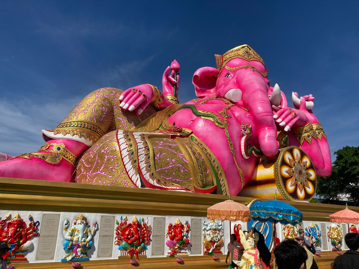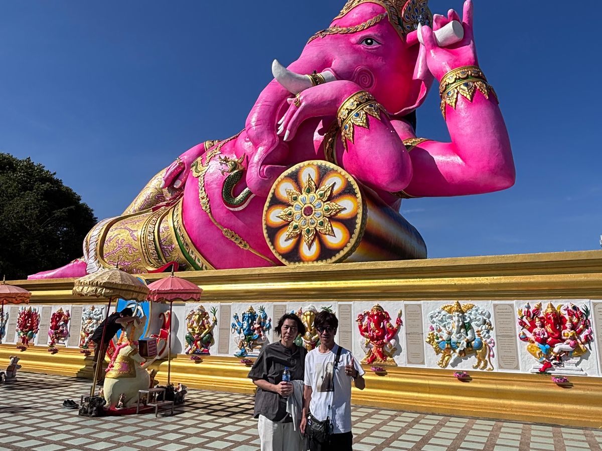 以前からピンクのガネーシャを見に行きたかったのですが、バンコク市内から遠く、交通の便も良くないので、なかなか行けなかったのですが、このツアーを見つけて申し込みました。とても快適に往復出来ました!ガイドなし、ということだったのですが、添乗員さんがとても日本語堪能で、往路のバス車内であれこれとても丁寧に解説して下さったので、とても楽しめました!私は日曜日に行ったので、渋滞に巻き込まれることもなく、12:30にはバンコク市内に戻ってくることが出来ました。お勧めだと思います!