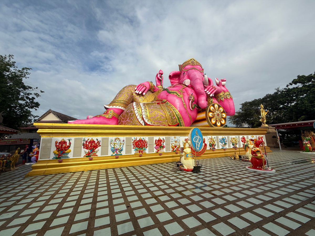 ツアーガイドさんが、タイ人の方ですが、英語、日本語が大変上手で、凄くいい人でした。70キロぐらい離れているので、車中時間もかなりありますが、色々とガイドさんがお話しをしてくれます。緑の天井のワットバクナムは感動する美しさです。ピンクのガネーシャ像はべつの場所に二つありました。凄い人ですが、一時間ぐらい自由行動で充分、写真は撮れて、7匹のネズミにお願い事をこそっと言うので、自分の産まれた曜日と、タイは曜日ごとの色があるのでそのネズミの色を調べておくと良いです。もう一つの座ったピンクのガネーシャ像はすいているので、お参りをすると良いです。なかなか日本では見る事が出来ないので、参加してほんとに良かったです。ガイドのpairatさんありがとうございました!